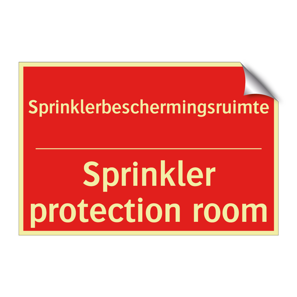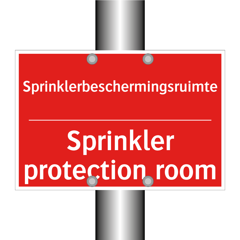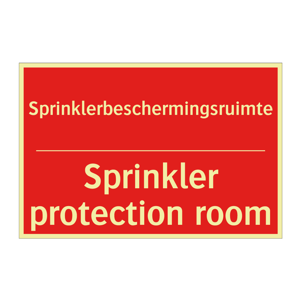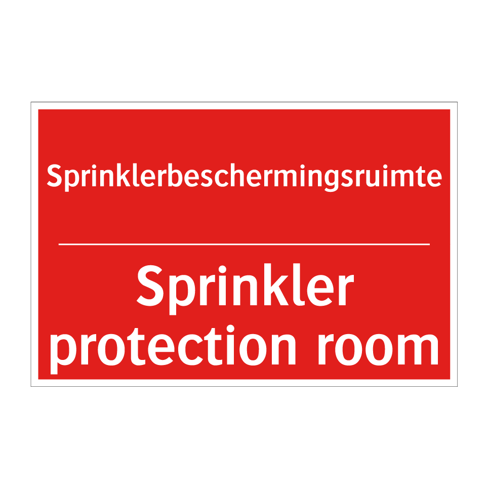 Brandbord met tekst Sprinklerbeschermingsruimte / Sprinkler protection room