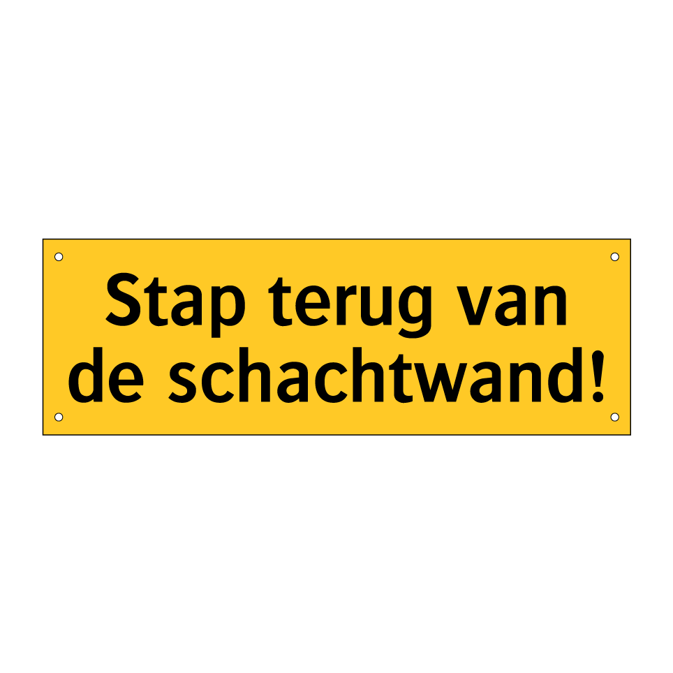 Waarschuwingsbord met de tekst Stap terug van de schachtwand!