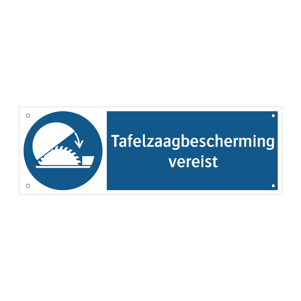 Verplichte bord met de tekst Tafelzaagbescherming vereist