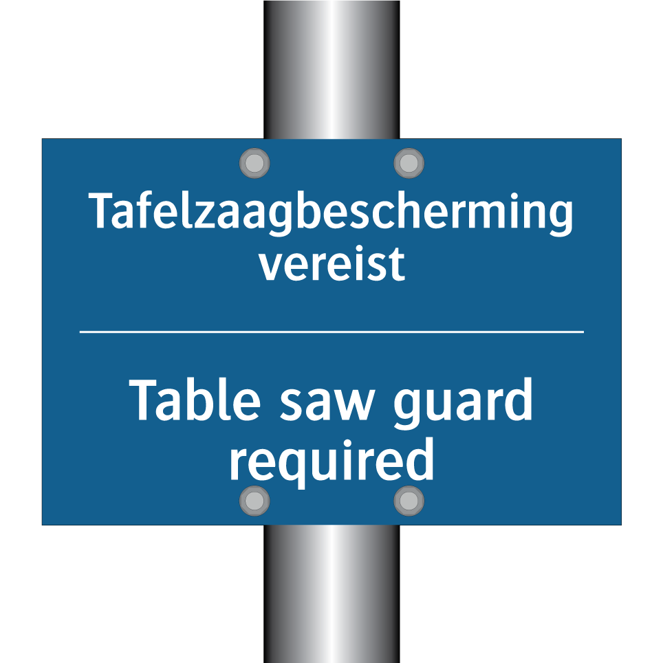 Verplichte bord met de tekst Tafelzaagbescherming vereist - Table saw guard required