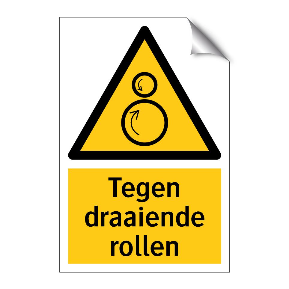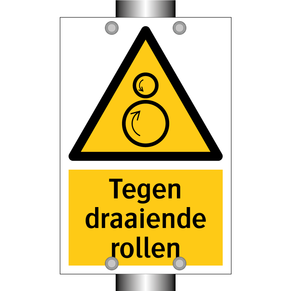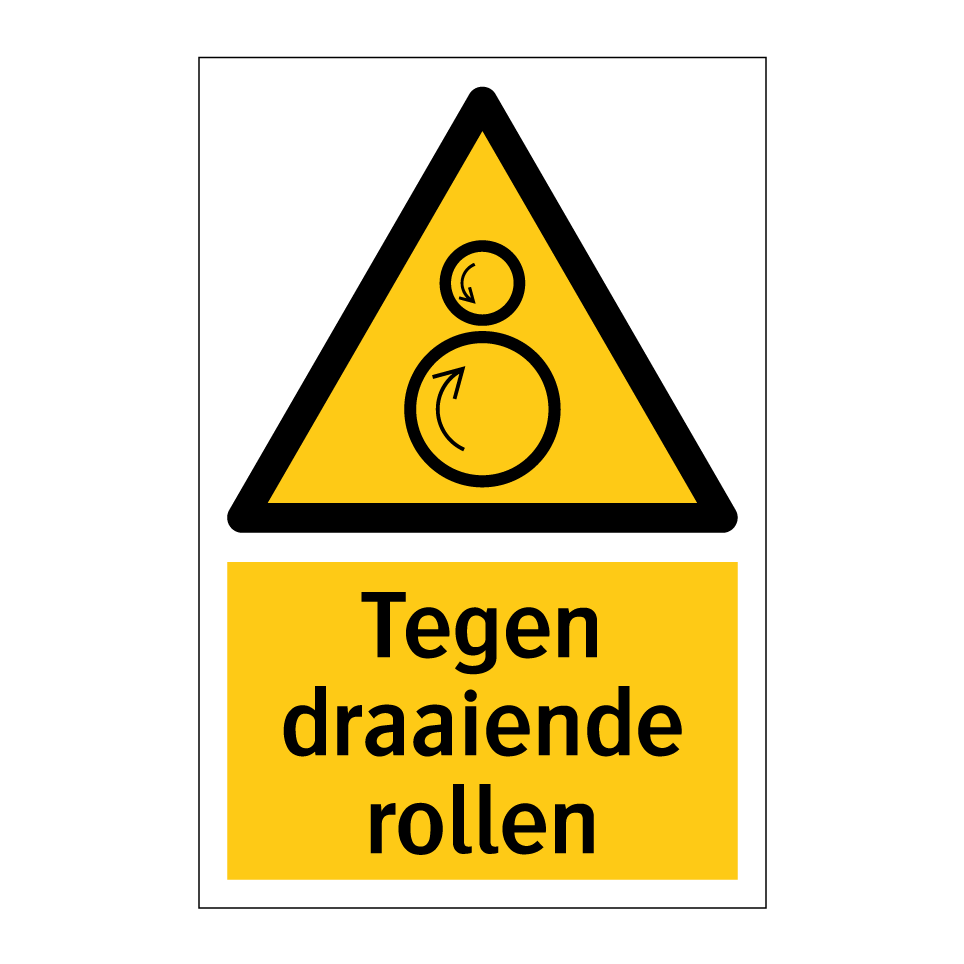 Waarschuwingsbord met de tekst Tegen draaiende rollen
