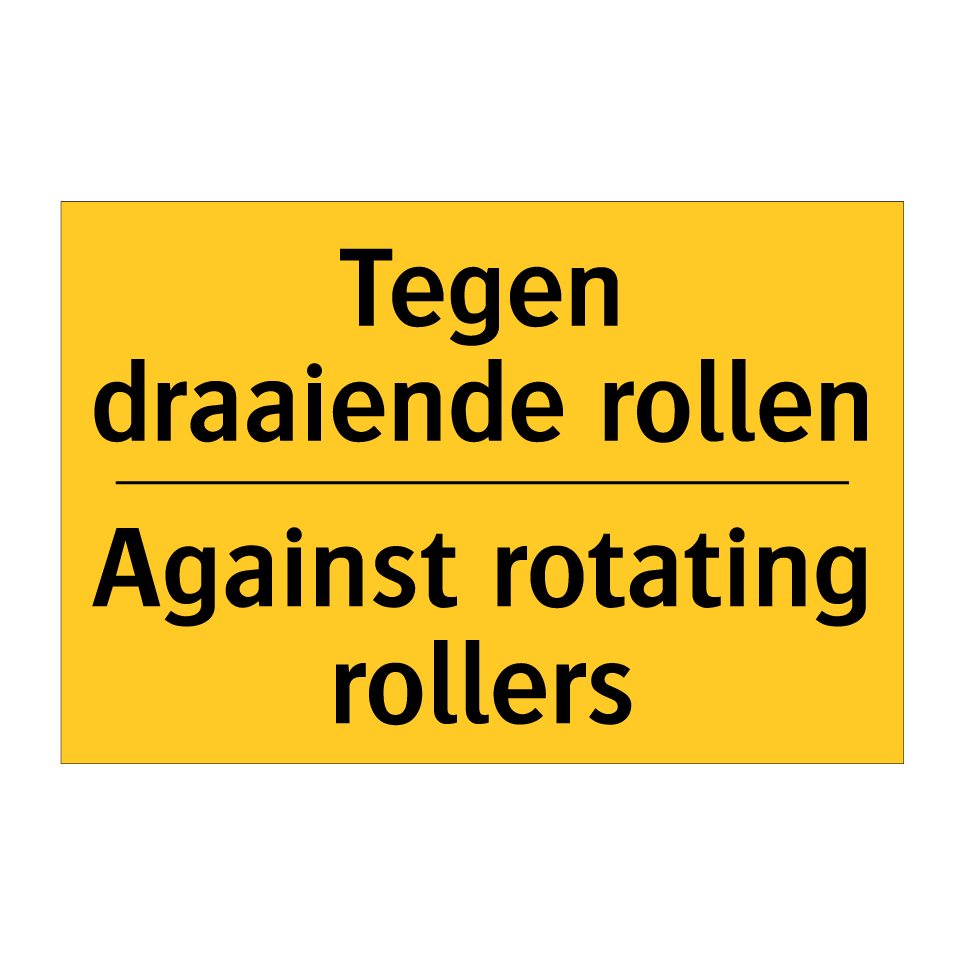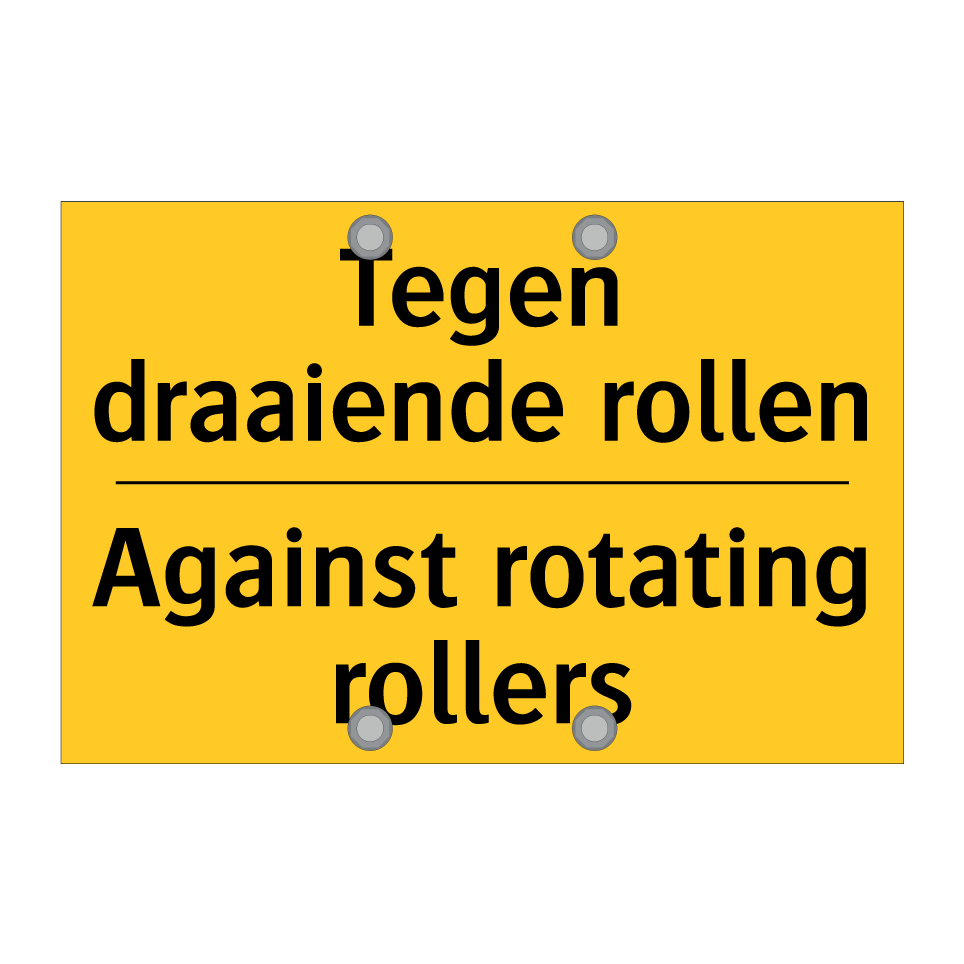 Waarschuwingsbord met de tekst Tegen draaiende rollen / Against rotating rollers