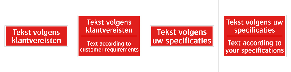 Brandbord met tekst Tekst volgens klantvereisten - Text according to customer requirements