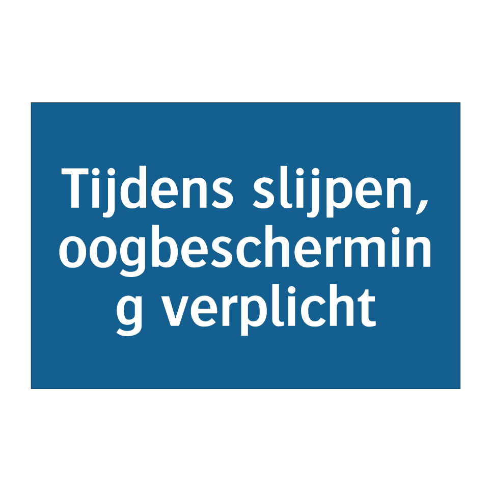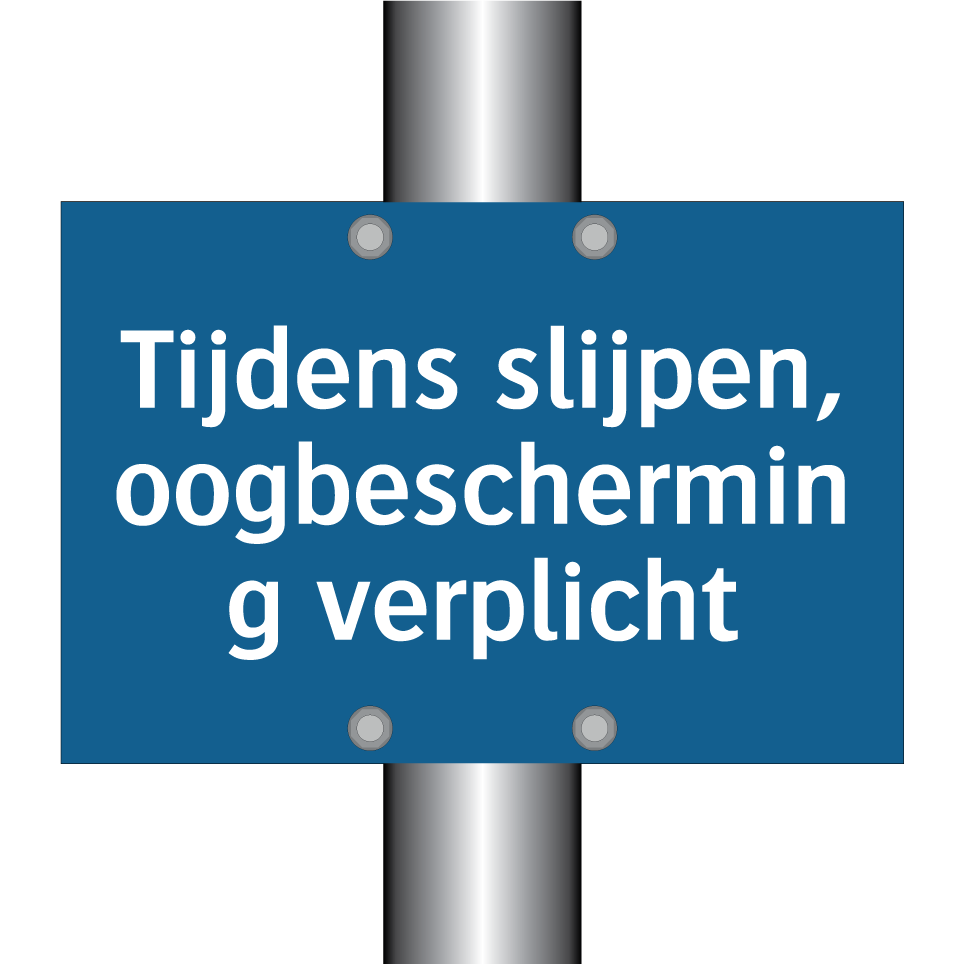 Verplichte bord met de tekst Tijdens slijpen, oogbescherming verplicht