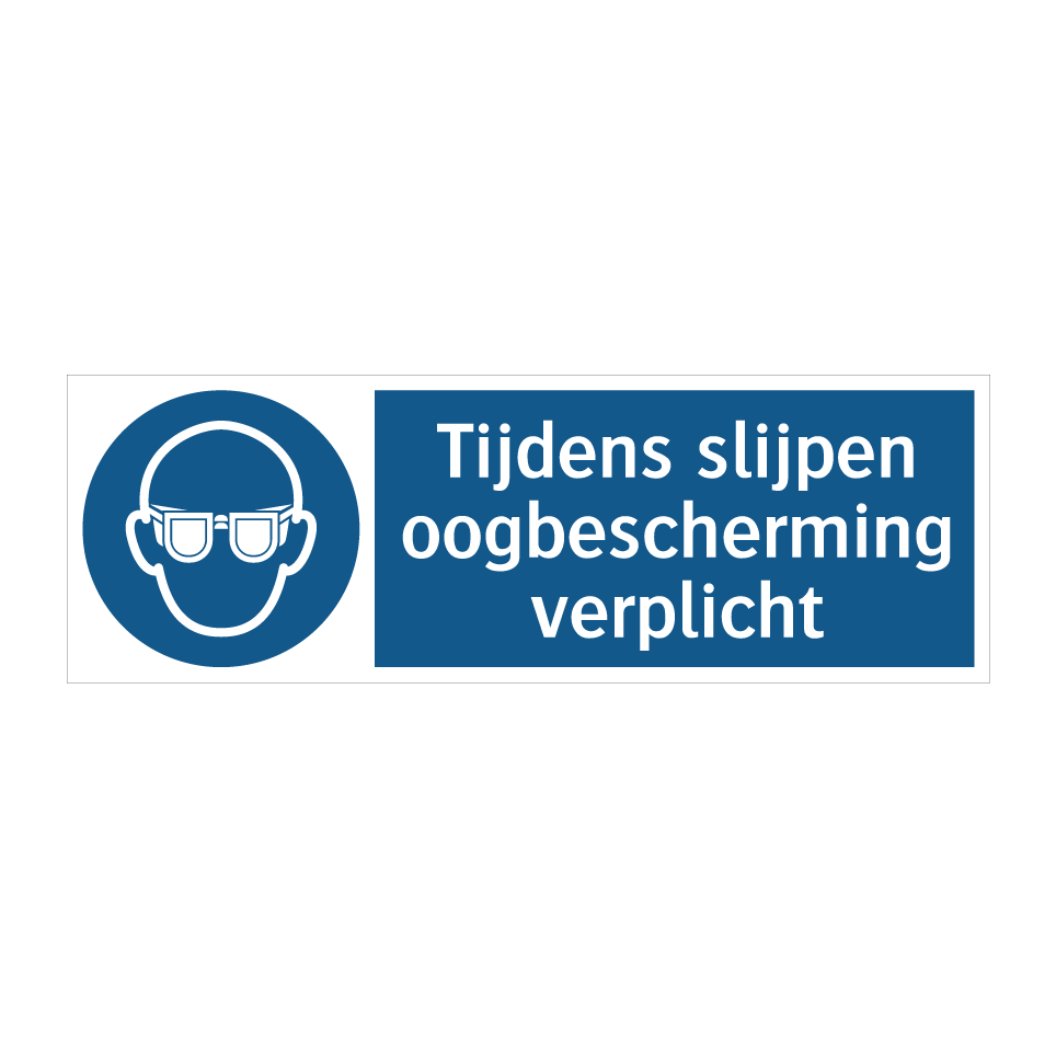 Verplichte bord met de tekst Tijdens slijpen oogbescherming verplicht