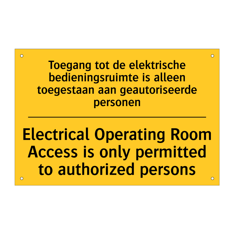 Waarschuwingsbord met de tekst Toegang tot de elektrische bedieningsruimte is alleen toegestaan aan geautoriseerde personen / Electrical Operating Room Access is only permitted to authorized persons