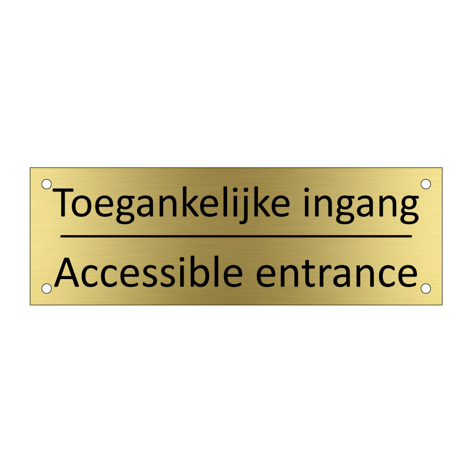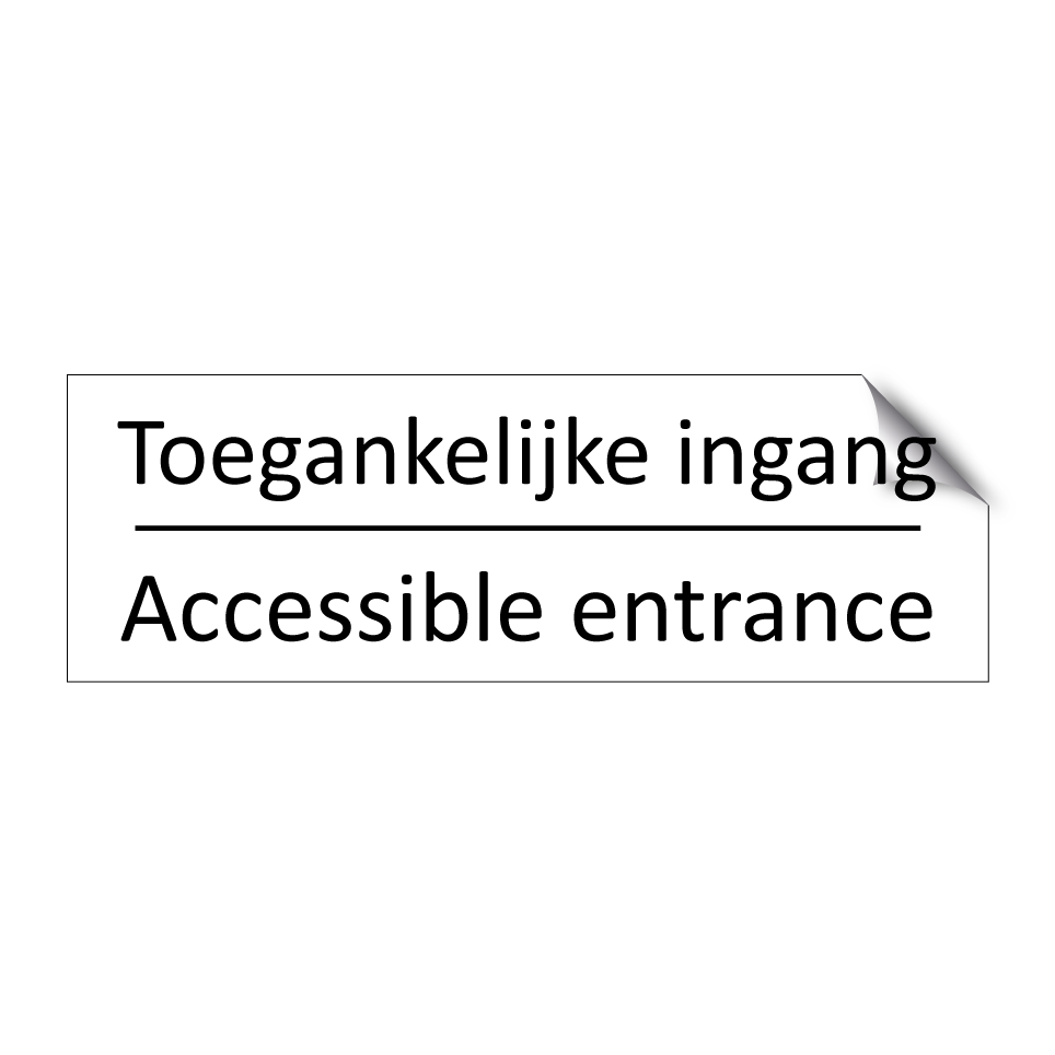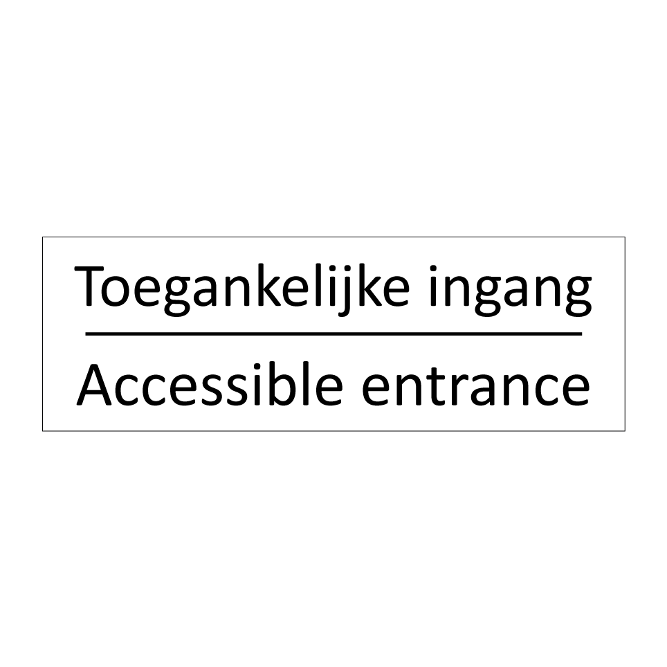 Informatiebord met tekst in het nederlands en engels. Dit bord luidt: Toegankelijke ingang evenals met de engelse vertaling Accessible entrance.