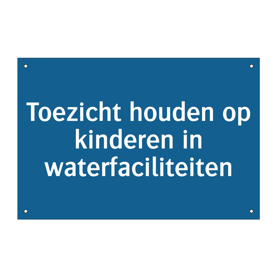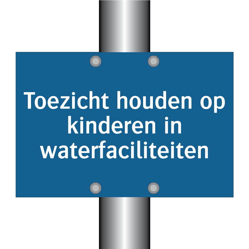 Verplichte bord met de tekst Toezicht houden op kinderen in waterfaciliteiten