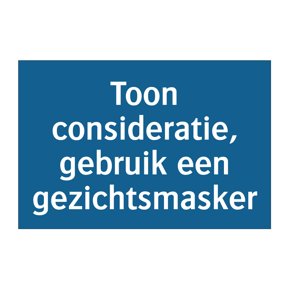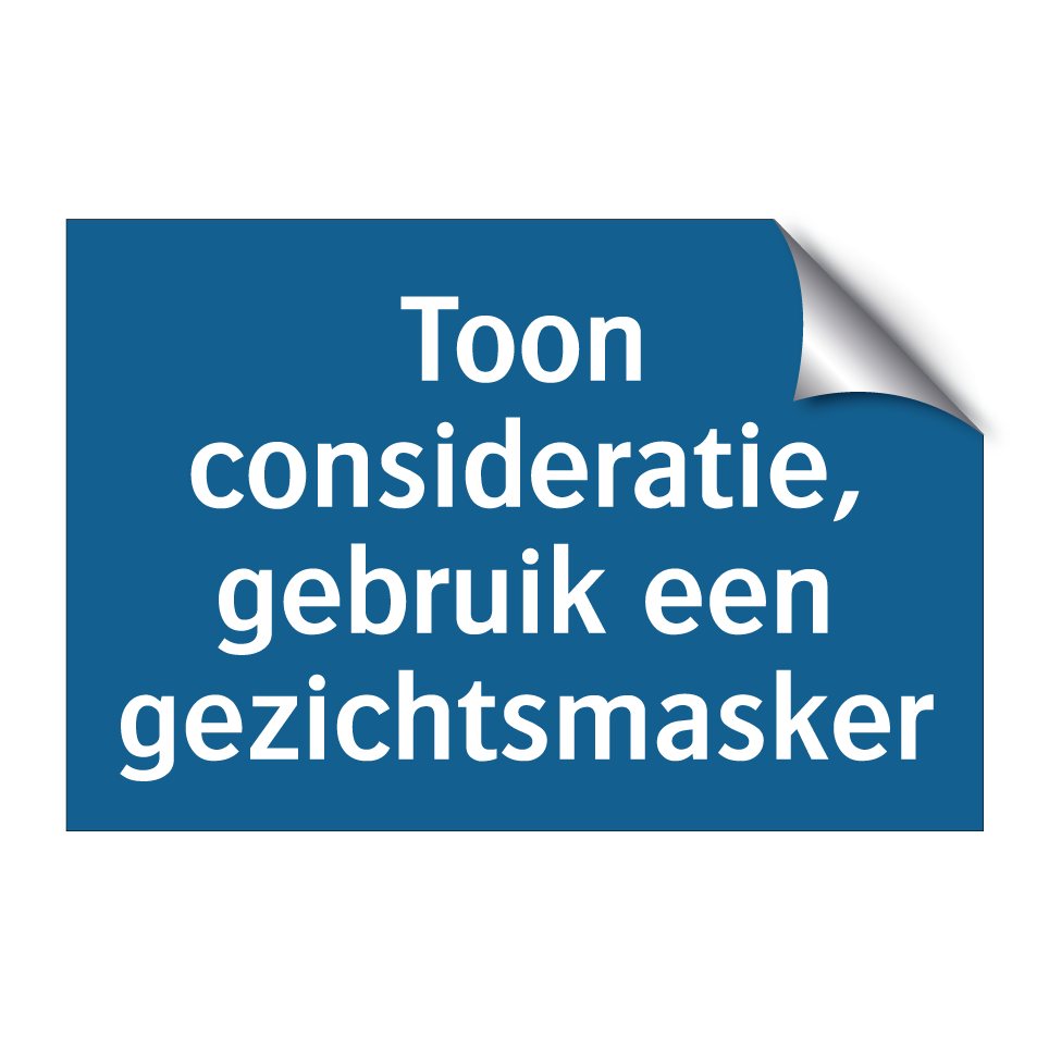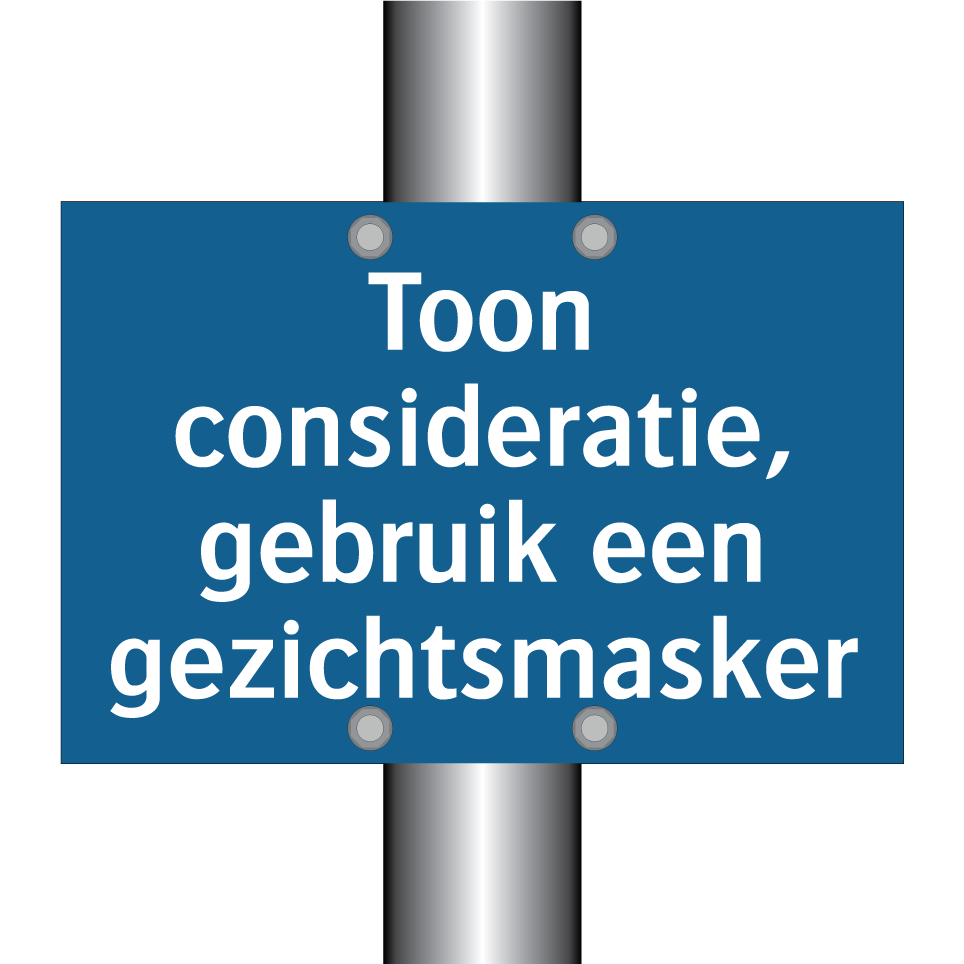 Verplichte bord met de tekst Toon consideratie, gebruik een gezichtsmasker