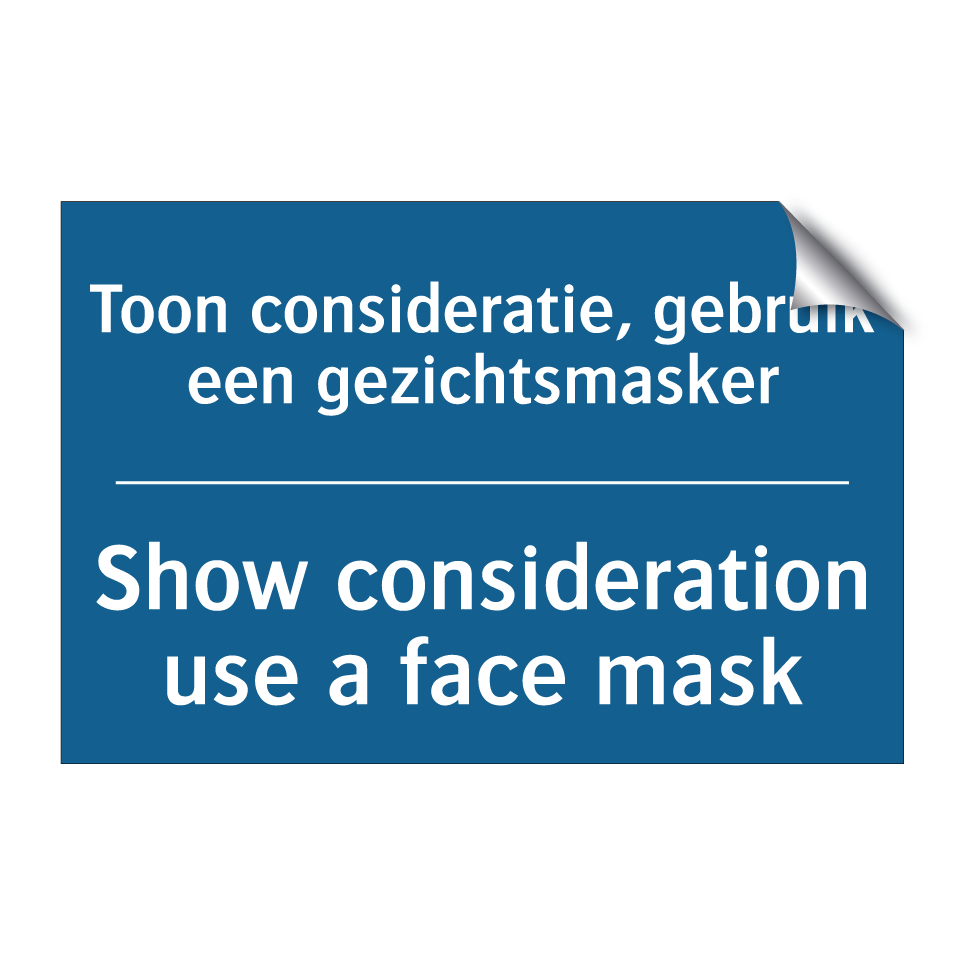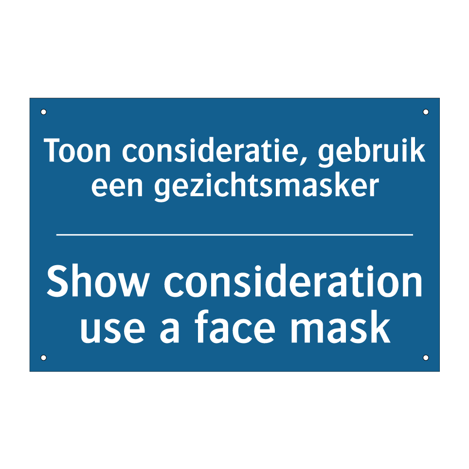 Verplichte bord met de tekst Toon consideratie, gebruik een gezichtsmasker - Show consideration use a face mask