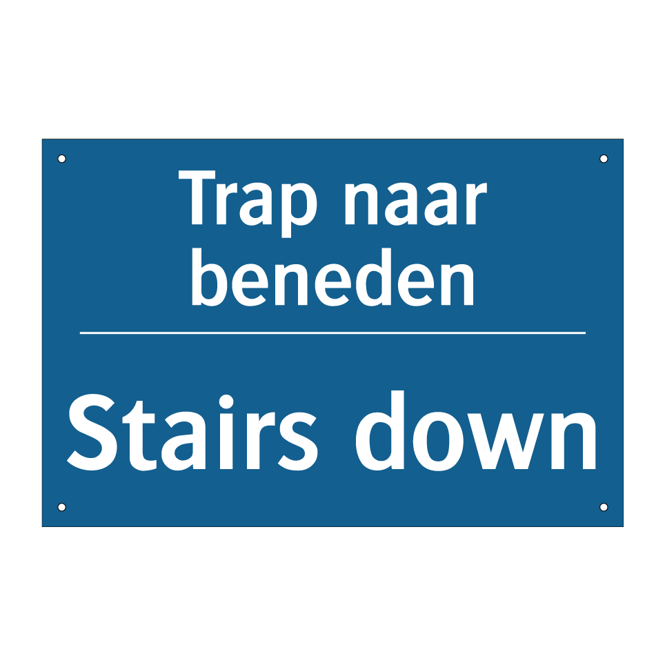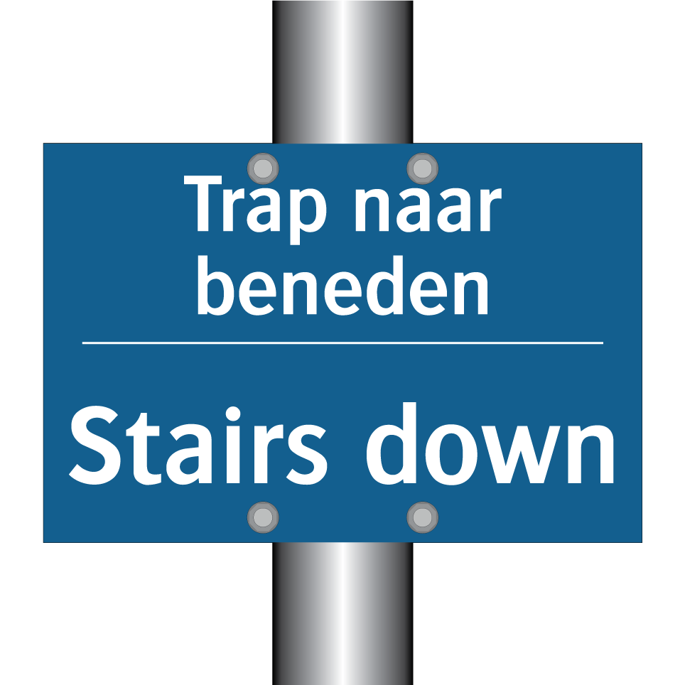 Verplichte bord met de tekst Trap naar beneden - Stairs down