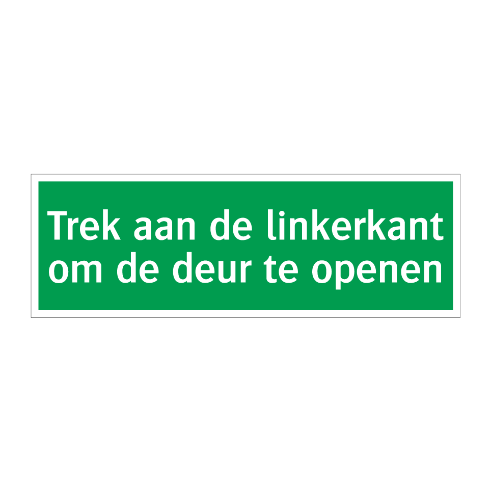 Deze noodbord is essentieel voor elke noodsituatie en biedt duidelijke instructies voor het openen van een deur. Ideaal voor gebruik in openbare gebouwen zoals kantoren, scholen, ziekenhuizen en winkelcentra. Plaats deze noodbord bij nooduitgangen, trappenhuizen of andere strategische locaties waar snelle evacuatie noodzakelijk is. De groene achtergrond met witte tekst zorgt voor maximale zichtbaarheid, zelfs in slecht verlichte omstandigheden. Door deze noodbord te installeren, verhoogt u de veiligheid en zorgt u ervoor dat iedereen weet hoe te handelen in geval van nood.
