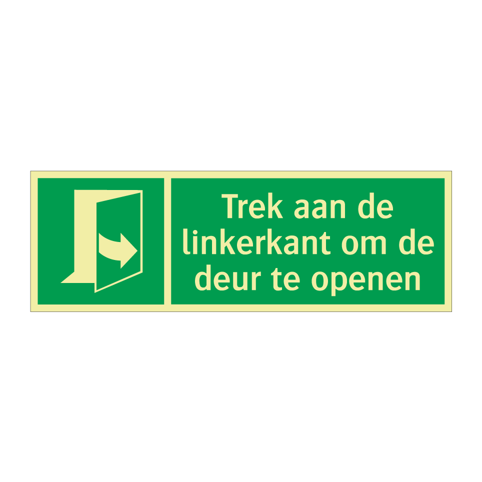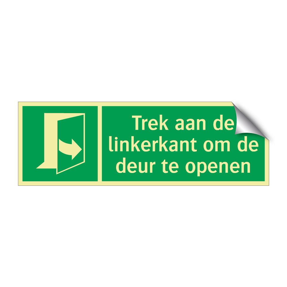Noodbord met tekst Trek aan de linkerkant om de deur te openen