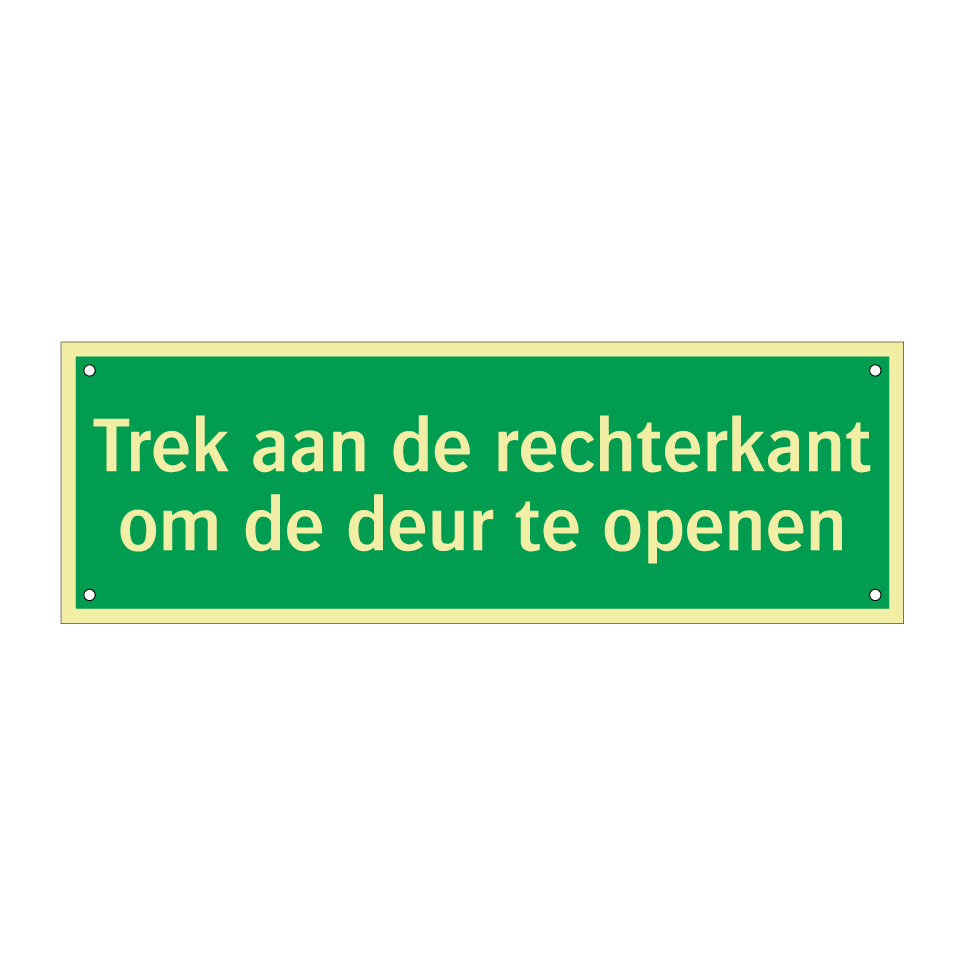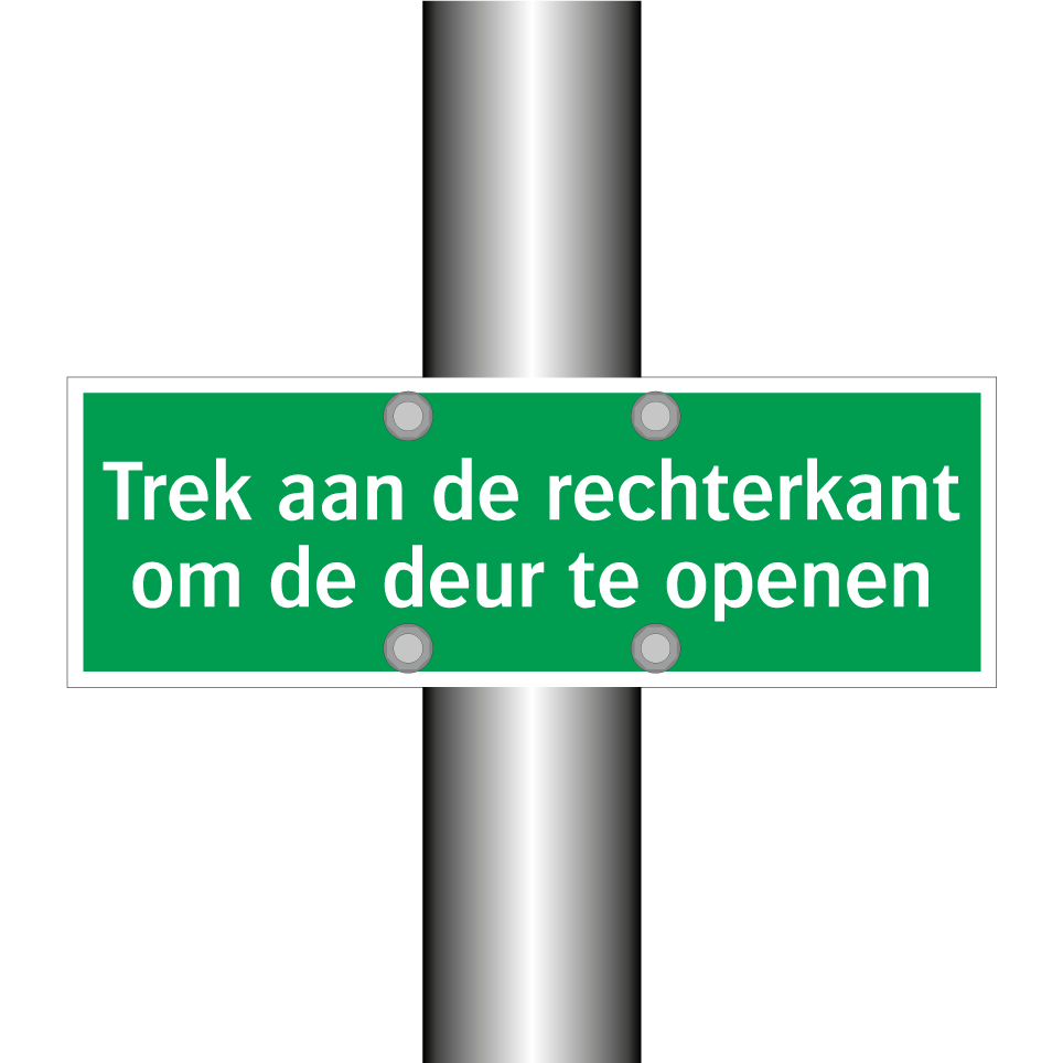 Noodbord met tekst Trek aan de rechterkant om de deur te openen