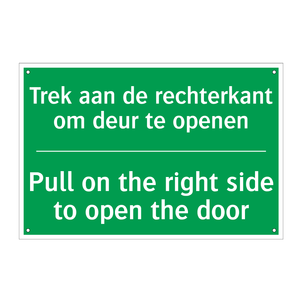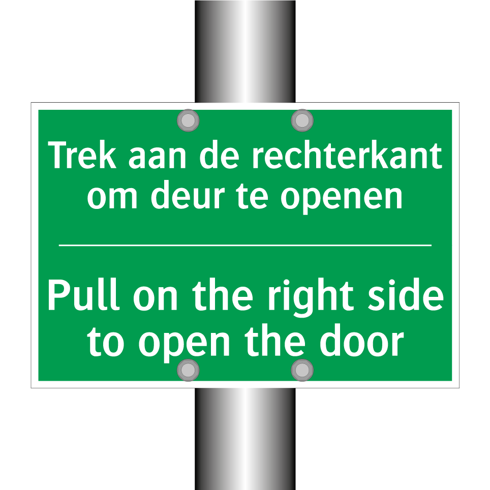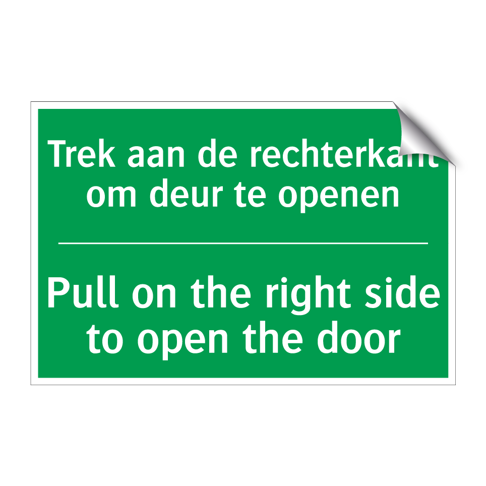 Noodbord met tekst Trek aan de rechterkant om deur te openen / Pull on the right side to open the door