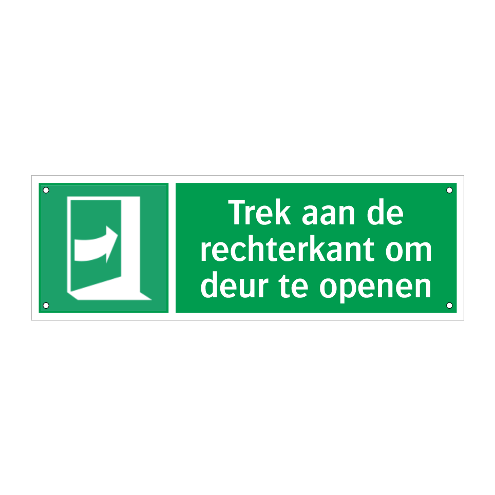 Deze noodbord is essentieel voor de veiligheid in noodsituaties. Het bord geeft duidelijk aan dat de deur aan de rechterkant geopend moet worden, wat cruciaal kan zijn tijdens een evacuatie. Plaats dit noodbord op strategische locaties zoals nooduitgangen, trappenhuizen en gangen om ervoor te zorgen dat iedereen snel en efficiënt kan ontsnappen. Dit bordje is ideaal voor gebruik in kantoren, scholen, ziekenhuizen en andere openbare gebouwen waar veiligheid een prioriteit is. De groene achtergrond met witte tekst en een duidelijke symbool zorgt voor maximale zichtbaarheid, zelfs in stressvolle situaties.