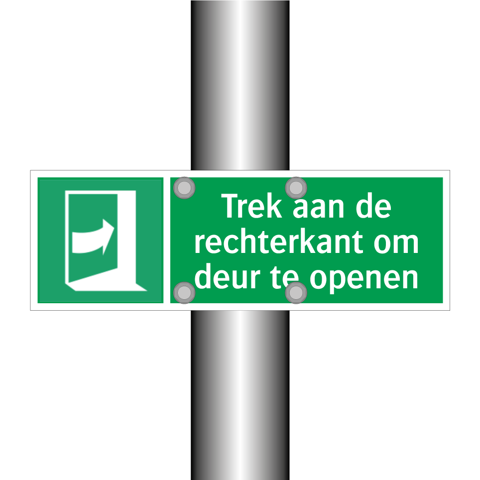 Noodbord met tekst Trek aan de rechterkant om deur te openen