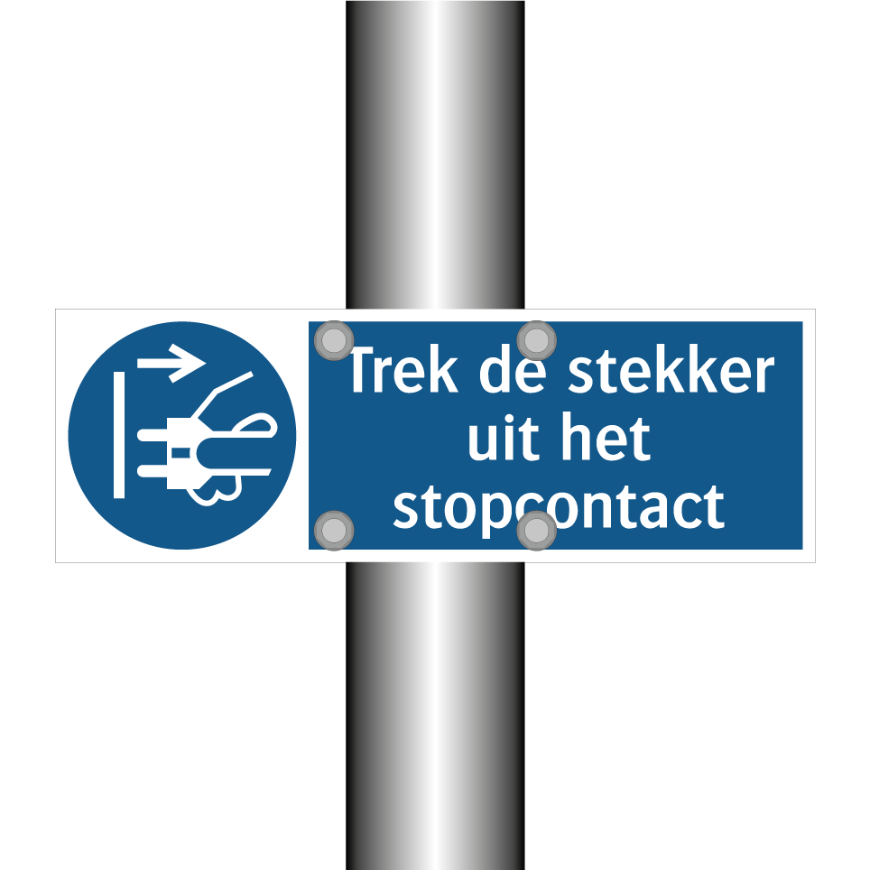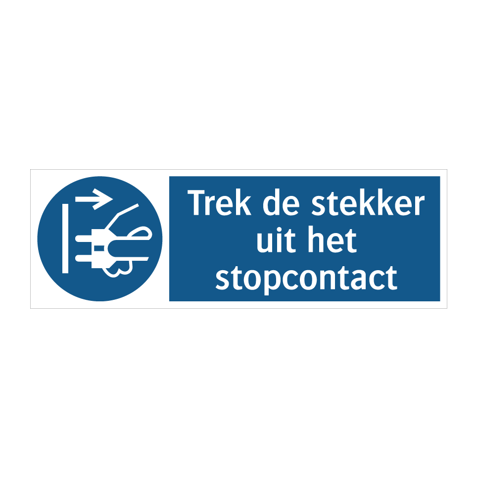 Verplichte bord met de tekst Trek de stekker uit het stopcontact