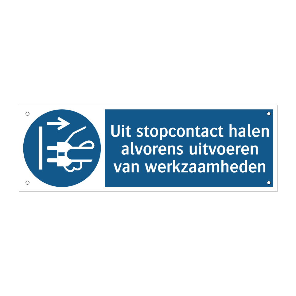 Verplichte bord met de tekst Uit stopcontact halen alvorens uitvoeren van werkzaamheden