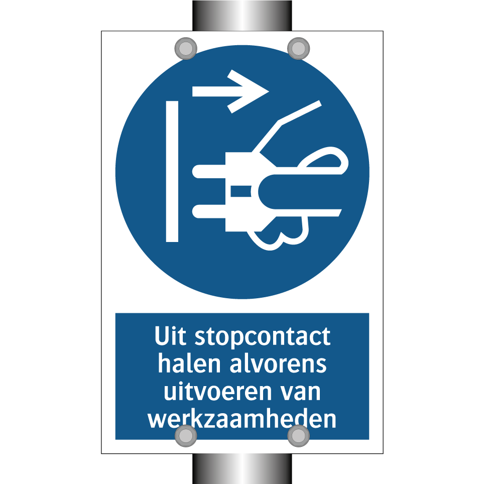 Verplichte bord met de tekst Uit stopcontact halen alvorens uitvoeren van werkzaamheden