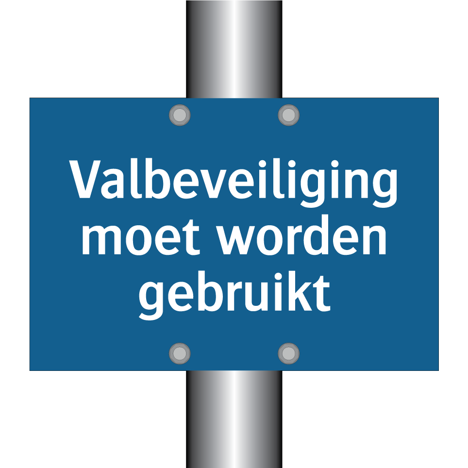 Verplichte bord met de tekst Valbeveiliging moet worden gebruikt