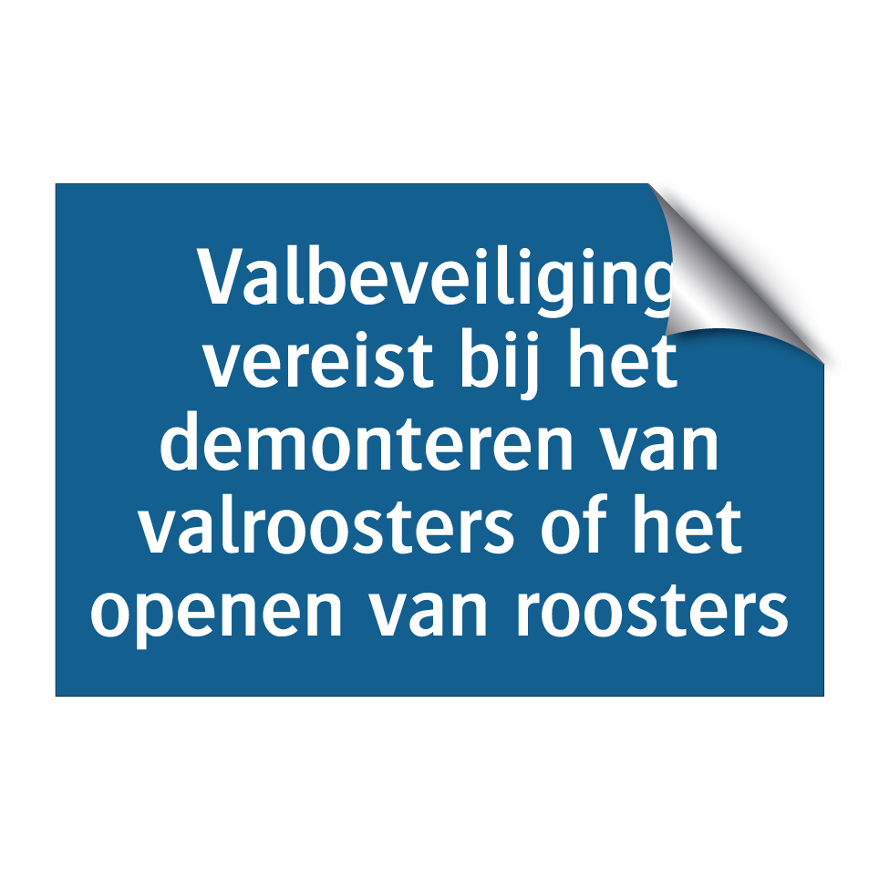 Deze verplichte bord is essentieel voor de veiligheid op werkplekken waar valroosters worden gedemonteerd of geopend. Plaats deze bord op strategische locaties zoals bouwplaatsen, industriële omgevingen en magazijnen om werknemers te waarschuwen voor de noodzaak van valbeveiliging. Door deze duidelijke en opvallende waarschuwing te gebruiken, kunnen ongelukken en verwondingen effectief worden voorkomen. De blauwe achtergrond en witte tekst zorgen voor maximale zichtbaarheid, zelfs in drukke of slecht verlichte omgevingen. Zorg ervoor dat iedereen op de hoogte is van de veiligheidsvoorschriften door deze verplichte bord op prominente plekken te plaatsen.