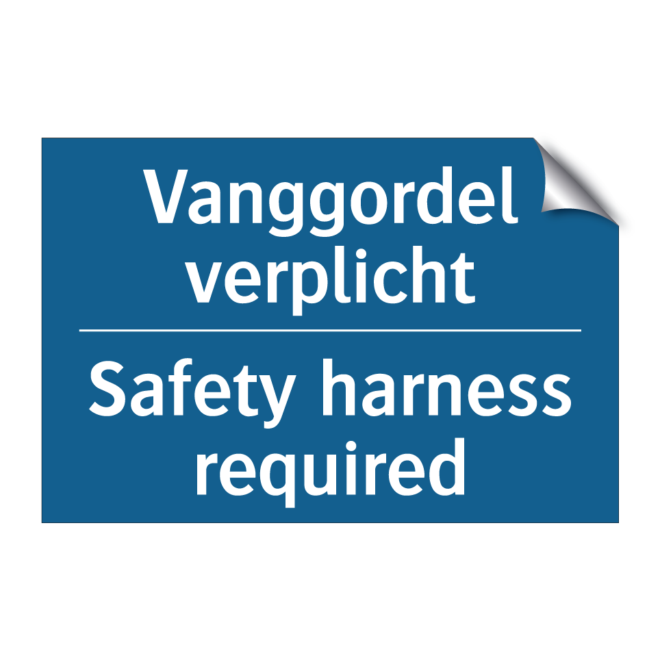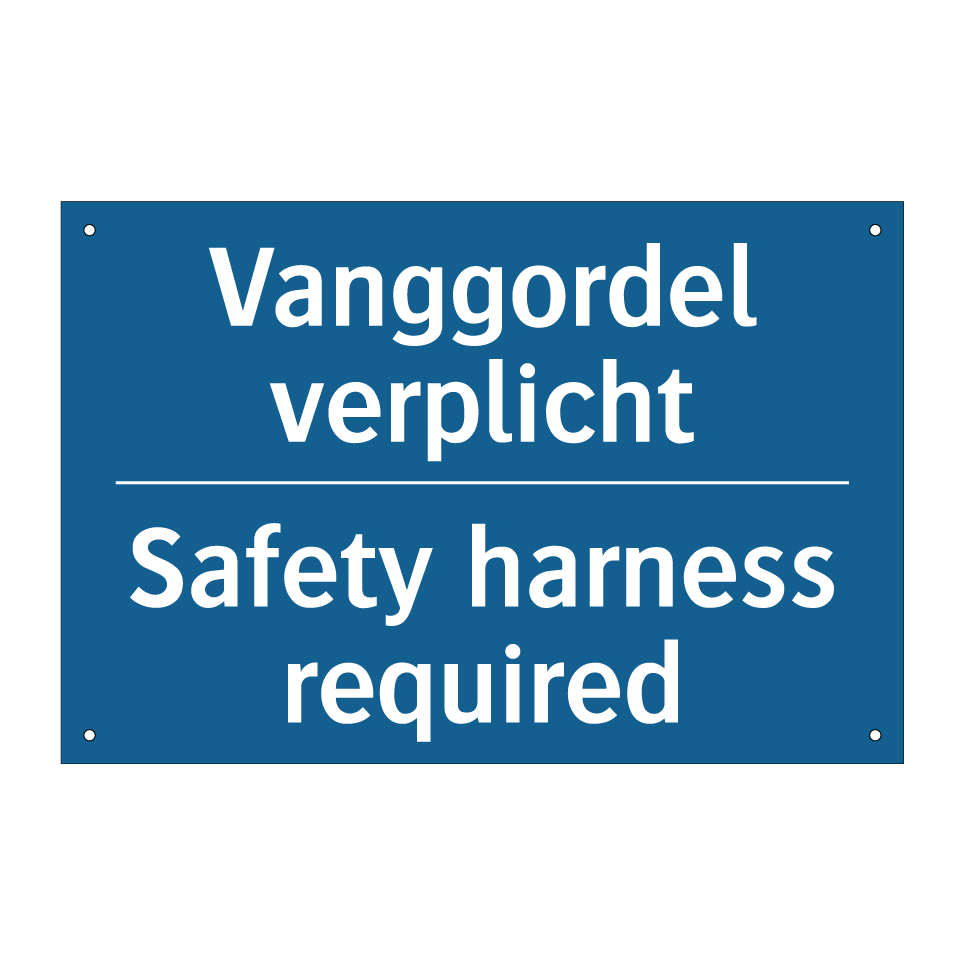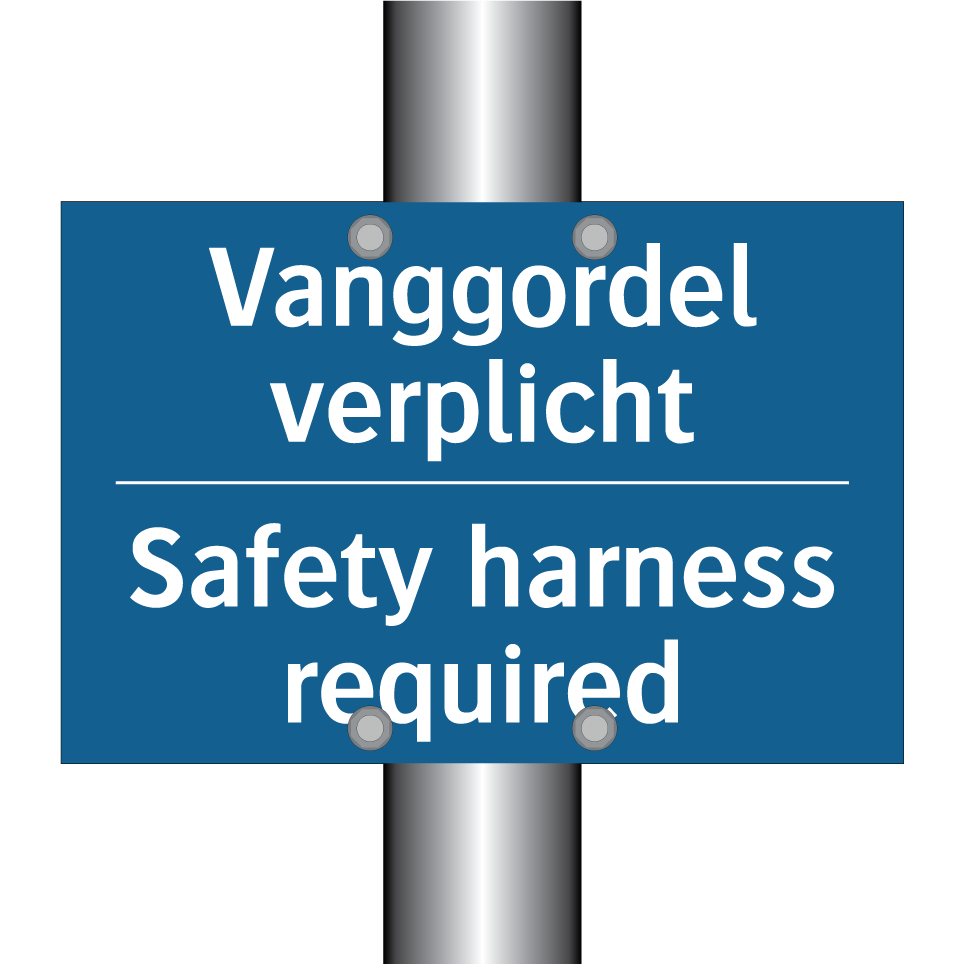 Verplichte bord met de tekst Vanggordel verplicht - Safety harness required