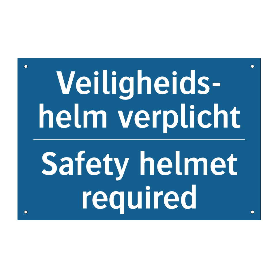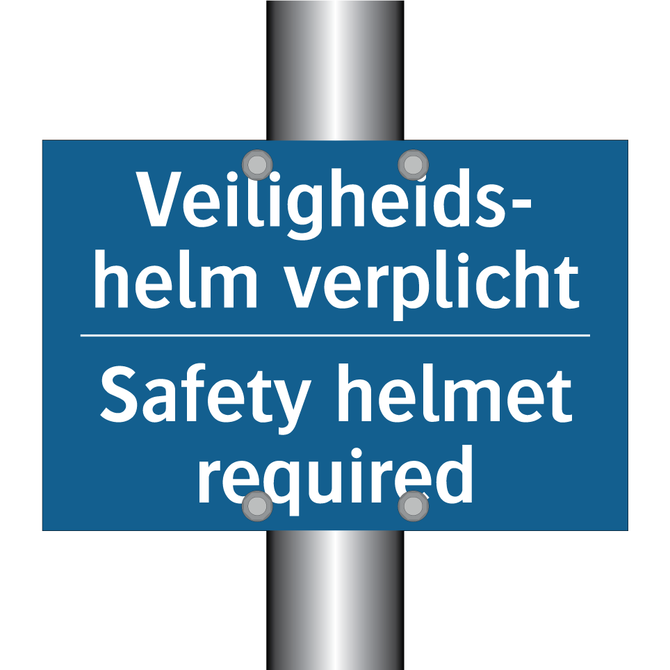 Verplichte bord met de tekst Veiligheids- helm verplicht - Safety helmet required