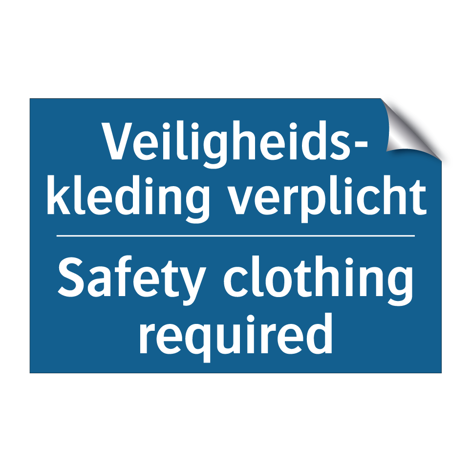 Deze verplichte bord is essentieel voor het waarborgen van de veiligheid op de werkplek. Met een opvallende blauwe achtergrond en duidelijke witte tekst, informeert het bord werknemers en bezoekers over de noodzaak van beschermende kleding. De tweetalige tekst, in zowel Nederlands als Engels, maakt het bord ideaal voor internationale omgevingen en zorgt ervoor dat de boodschap door een breder publiek wordt begrepen. Dit veiligheidsbord kan strategisch worden geplaatst bij ingangen van bouwplaatsen, fabrieken of andere industriële locaties waar persoonlijke beschermingsmiddelen verplicht zijn. Door de zichtbaarheid en duidelijke communicatie helpt dit bord om veiligheidsnormen te handhaven en risico's te minimaliseren.
