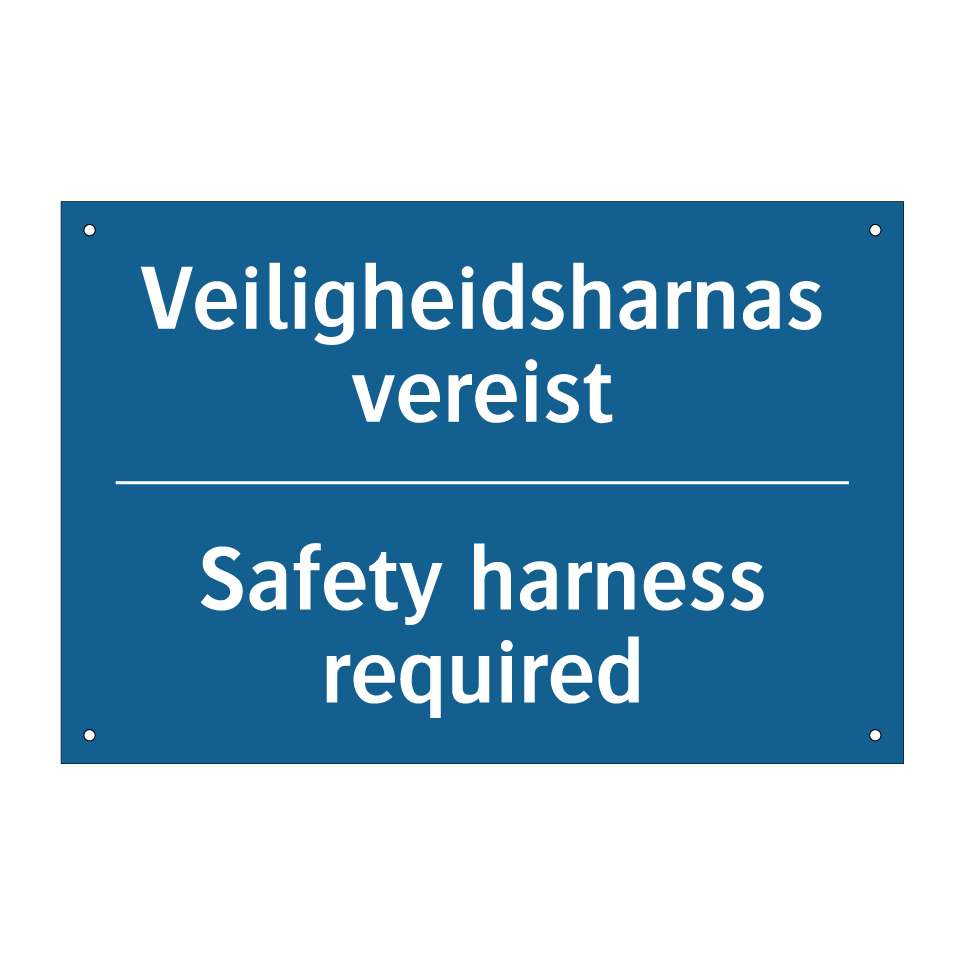 Verplichte bord met de tekst Veiligheidsharnas vereist - Safety harness required