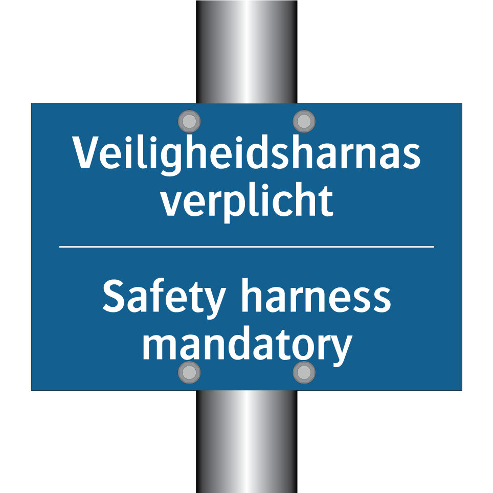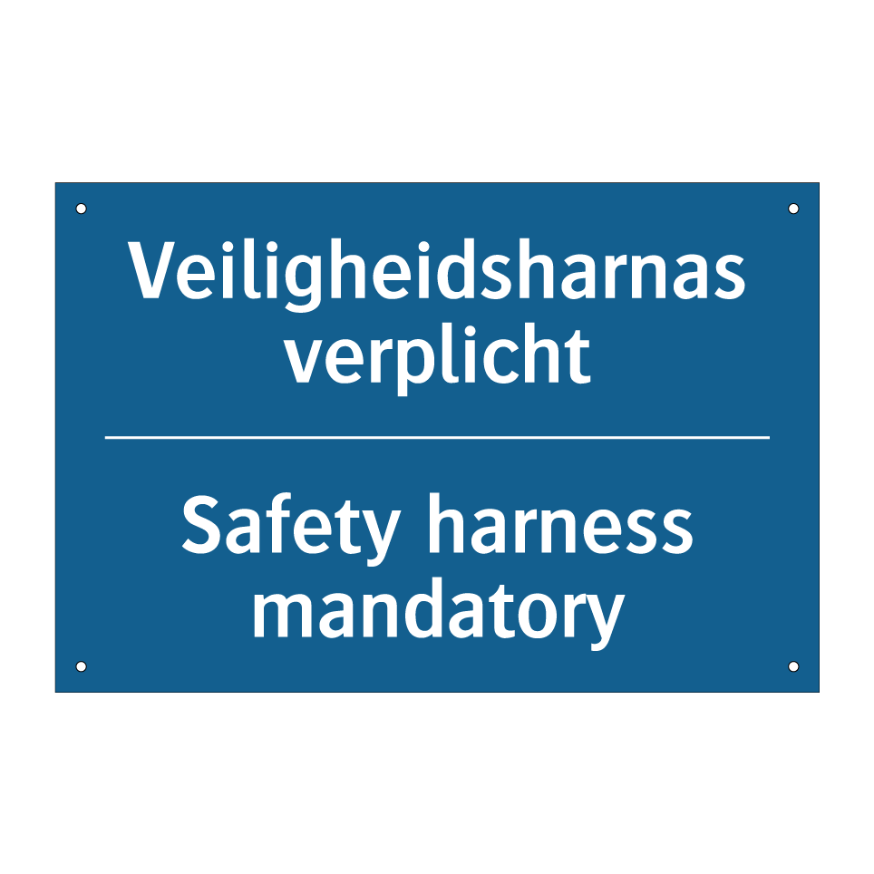 Verplichte bord met de tekst Veiligheidsharnas verplicht - Safety harness mandatory