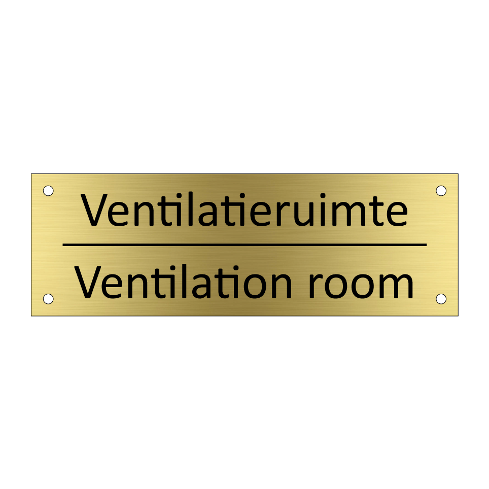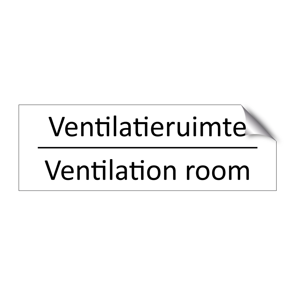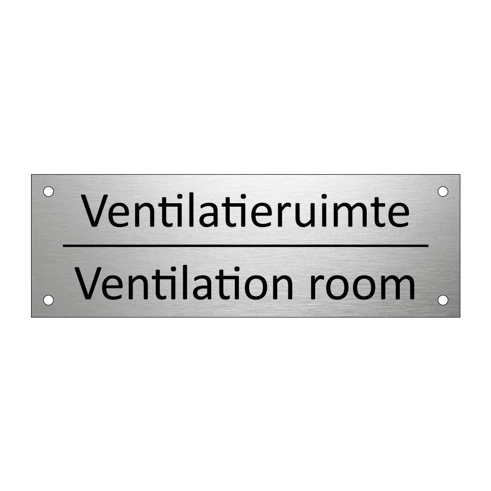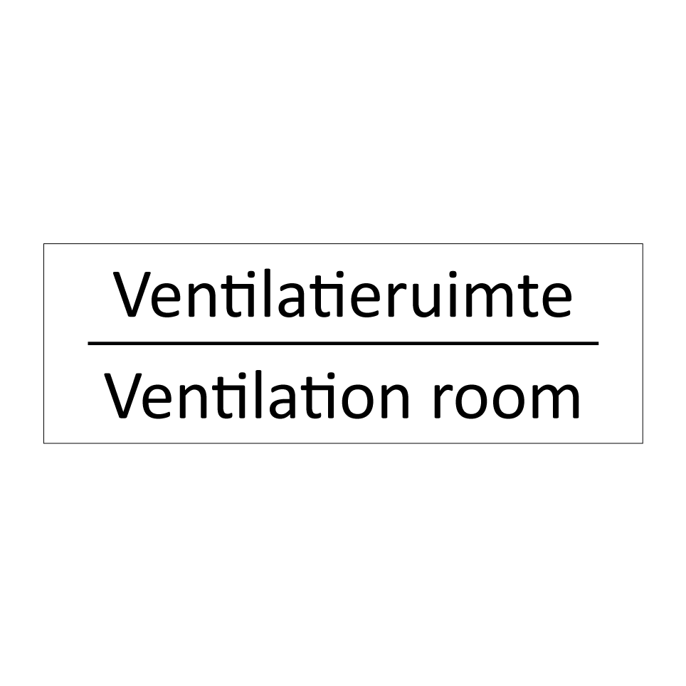 Informatiebord met tekst in het nederlands en engels. Dit bord luidt: Ventilatieruimte evenals met de engelse vertaling Ventilation room.