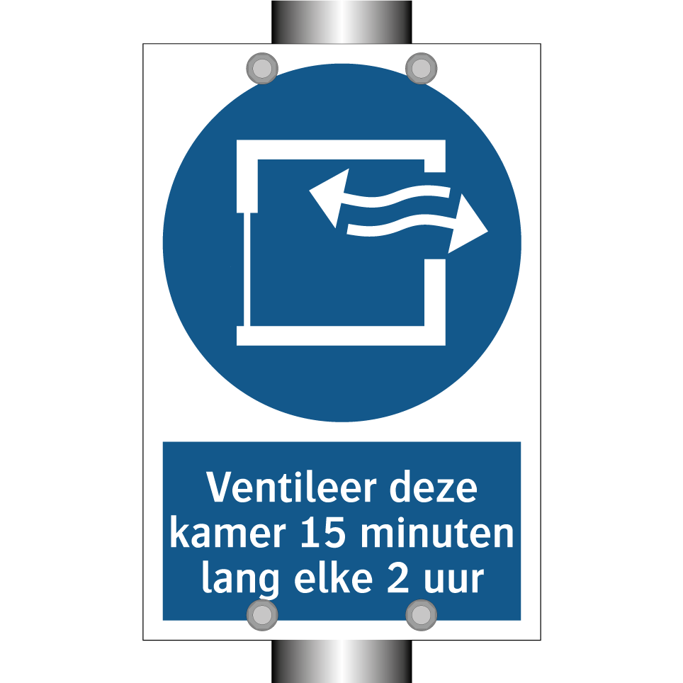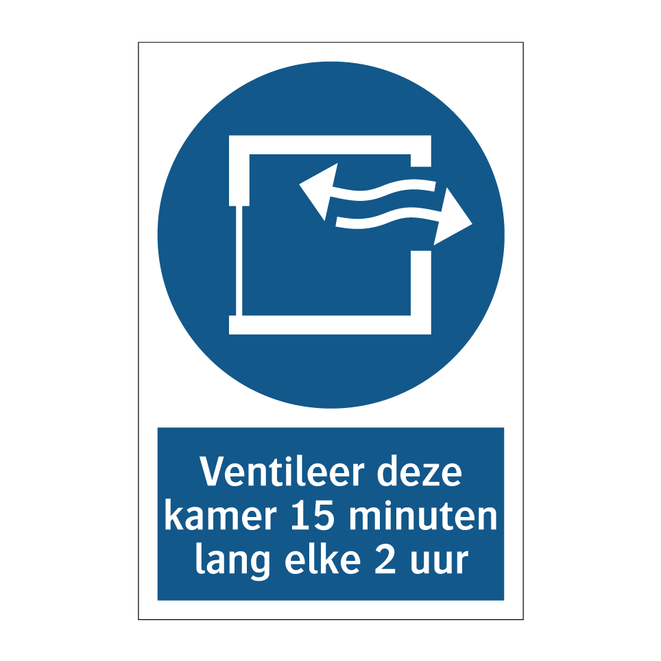 Verplichte bord met de tekst Ventileer deze kamer 15 minuten lang elke 2 uur