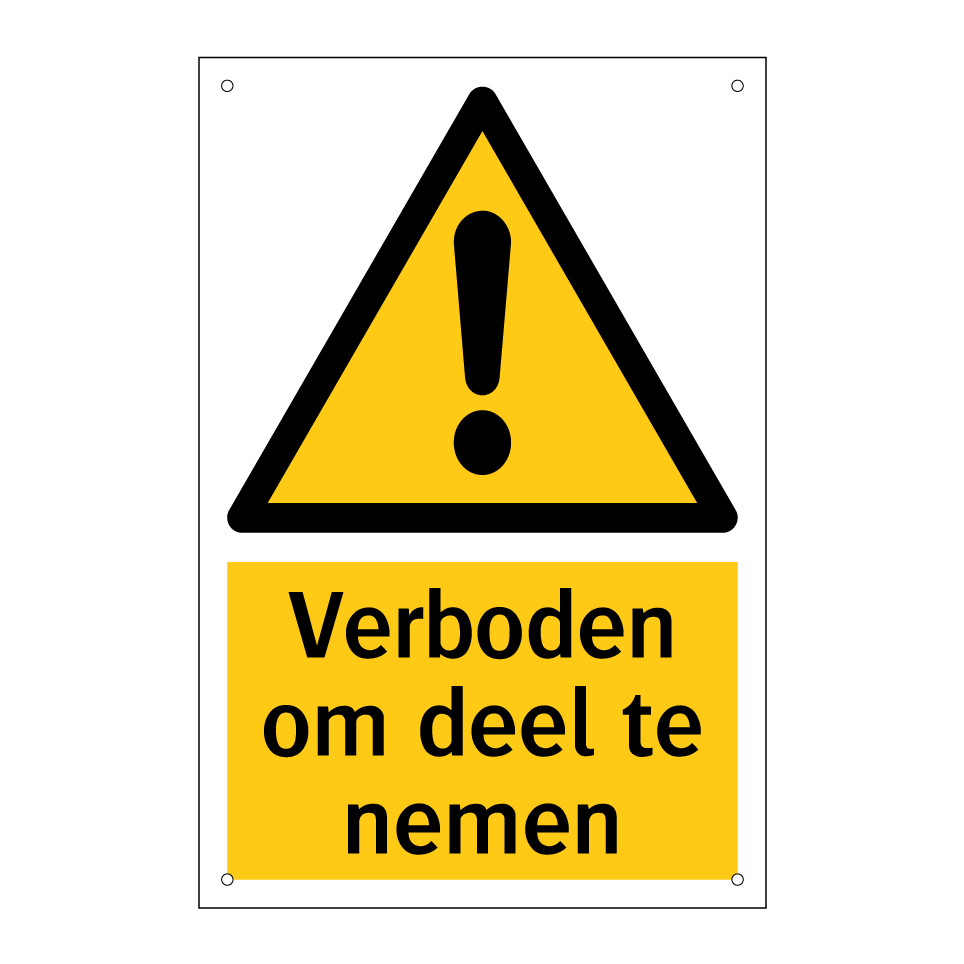 Waarschuwingsbord met de tekst Verboden om deel te nemen