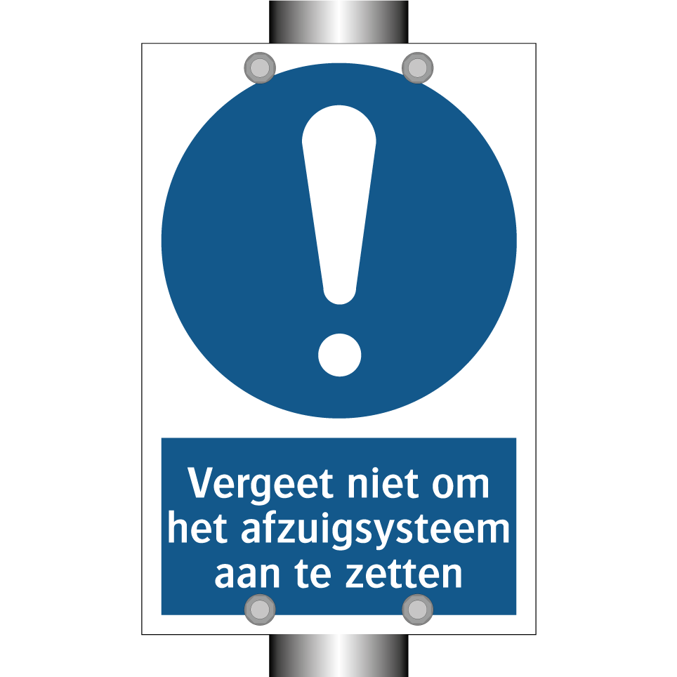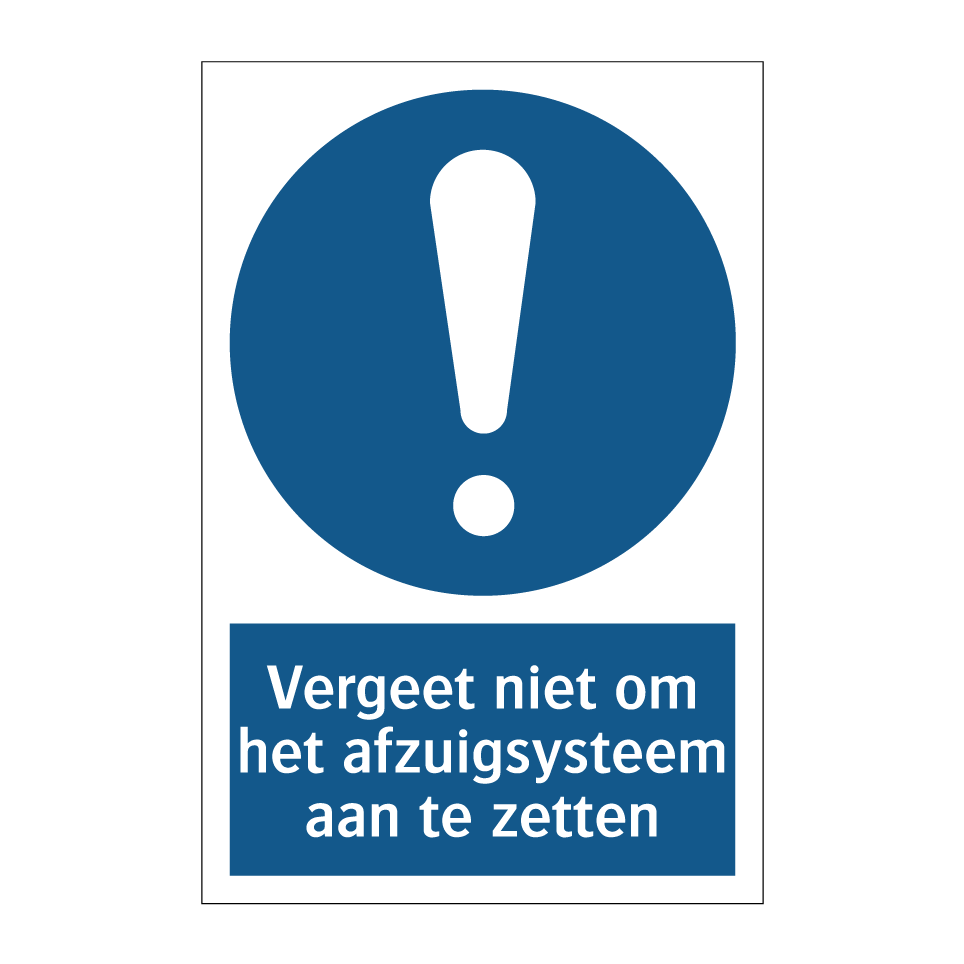 Verplichte bord met de tekst Vergeet niet om het afzuigsysteem aan te zetten