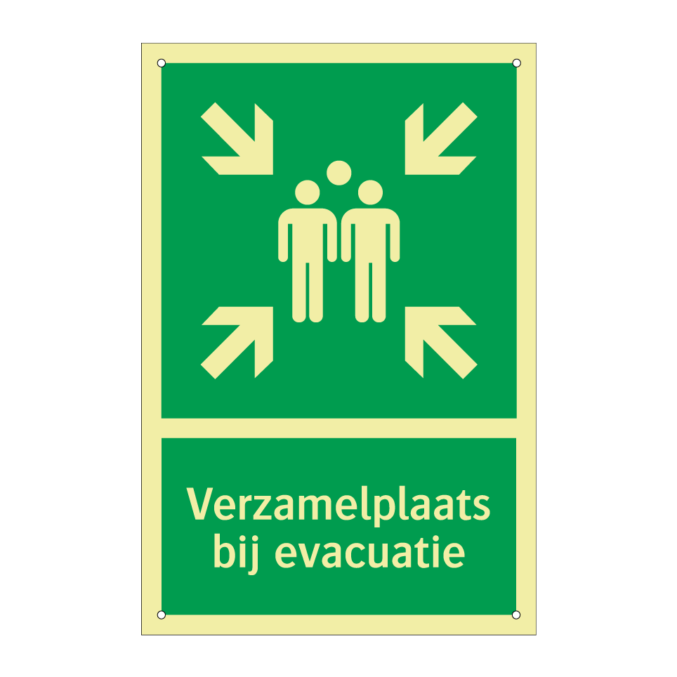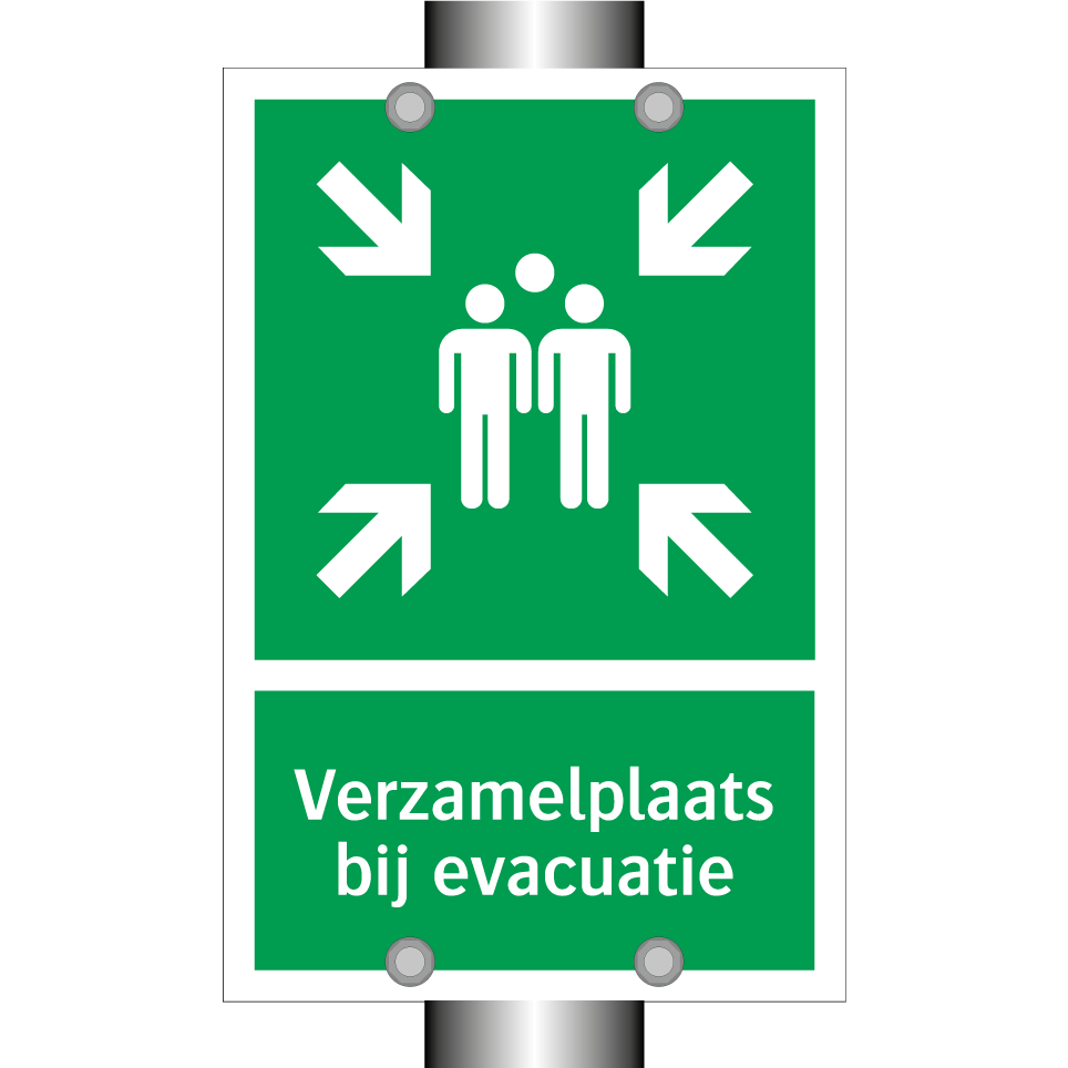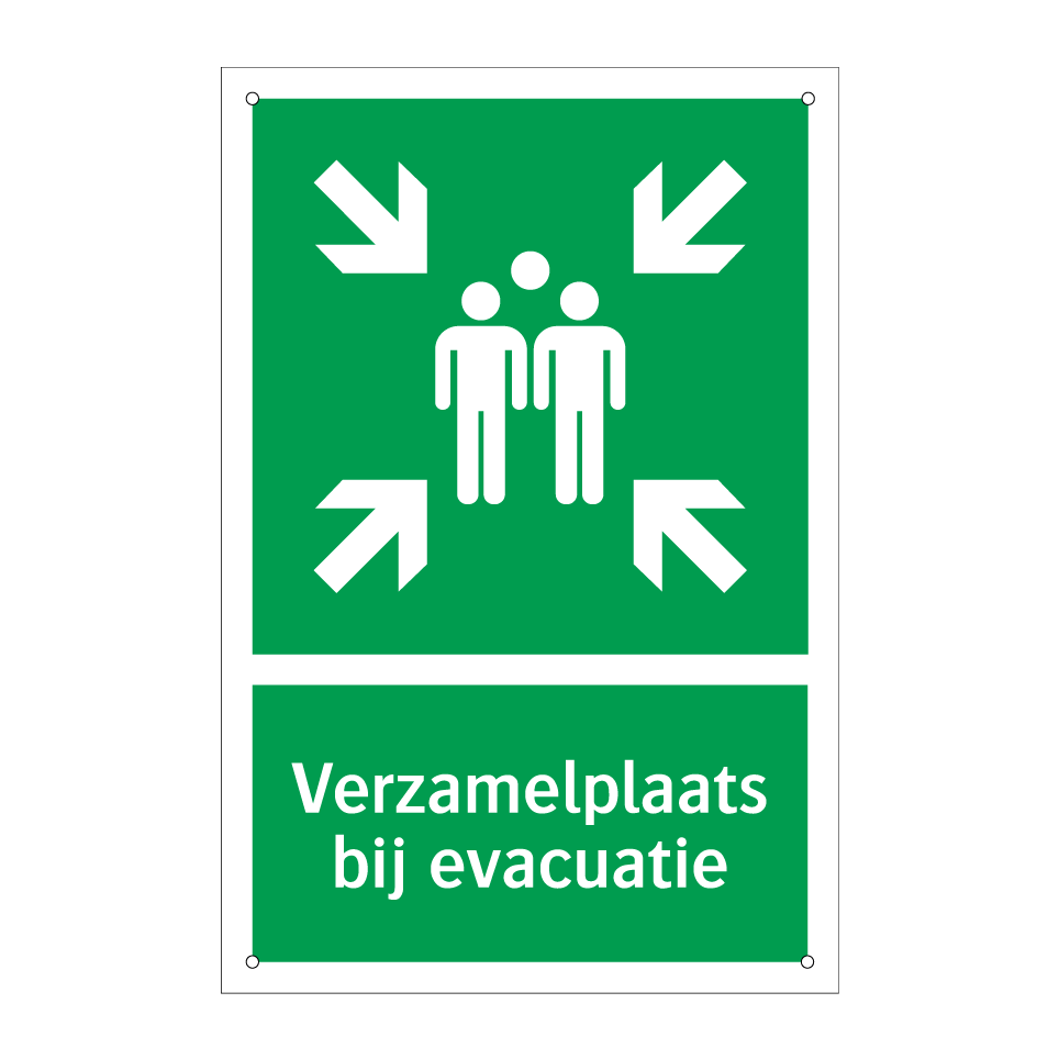 Noodbord met tekst Verzamelplaats bij evacuatie