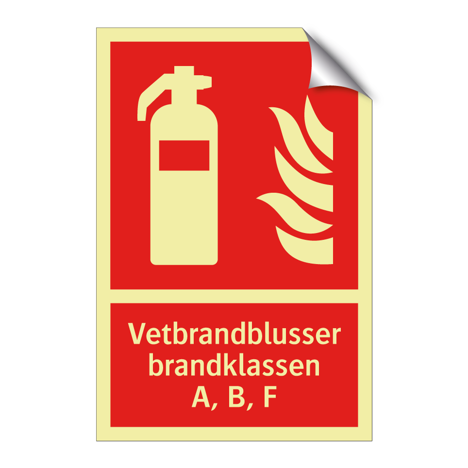Brandbord met tekst Vetbrandblusser brandklassen A, B, F