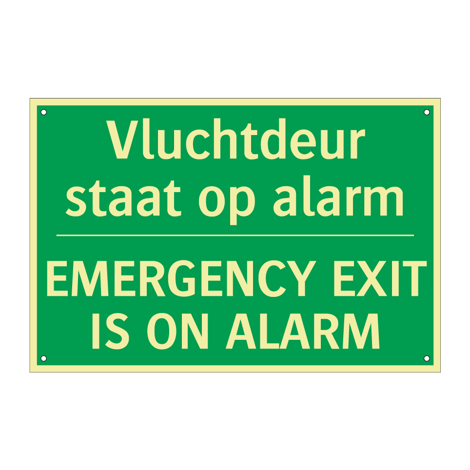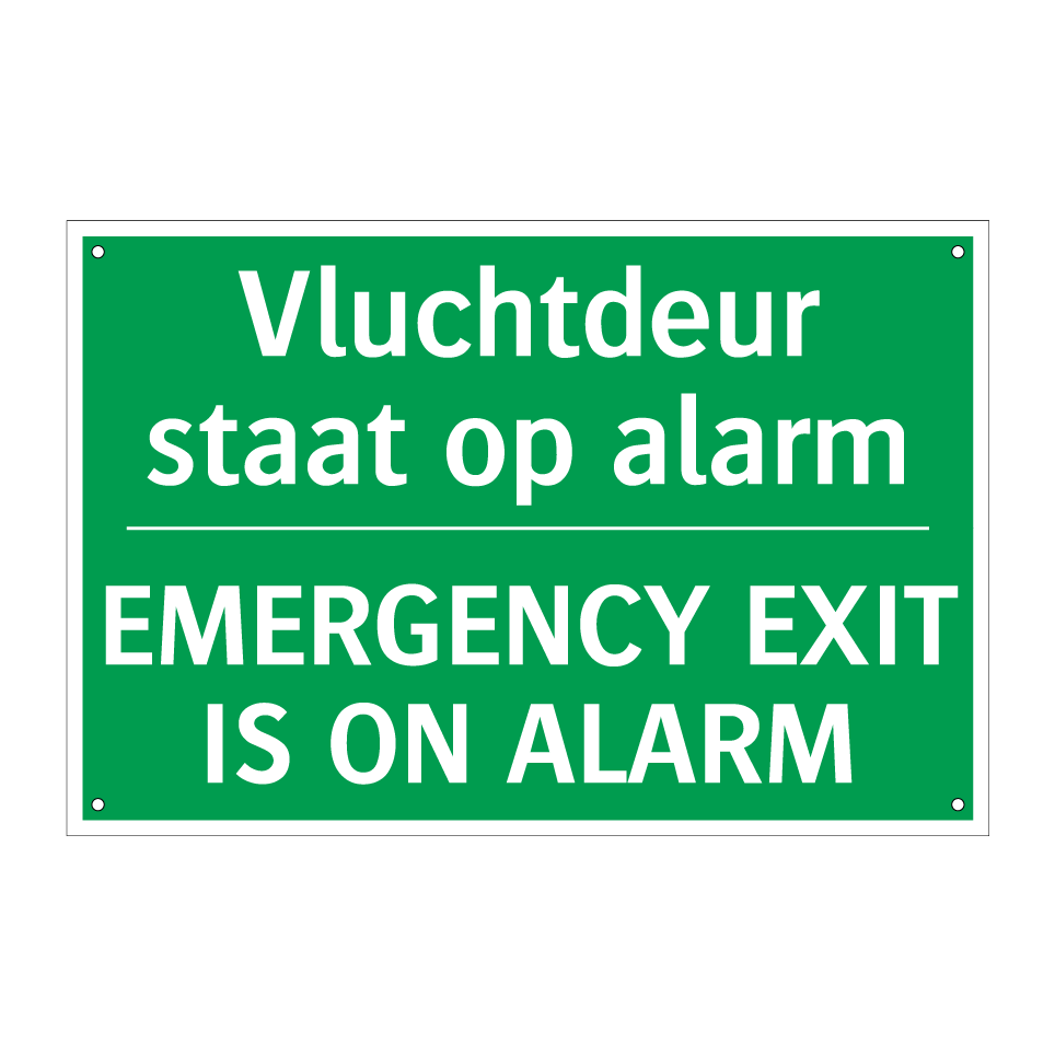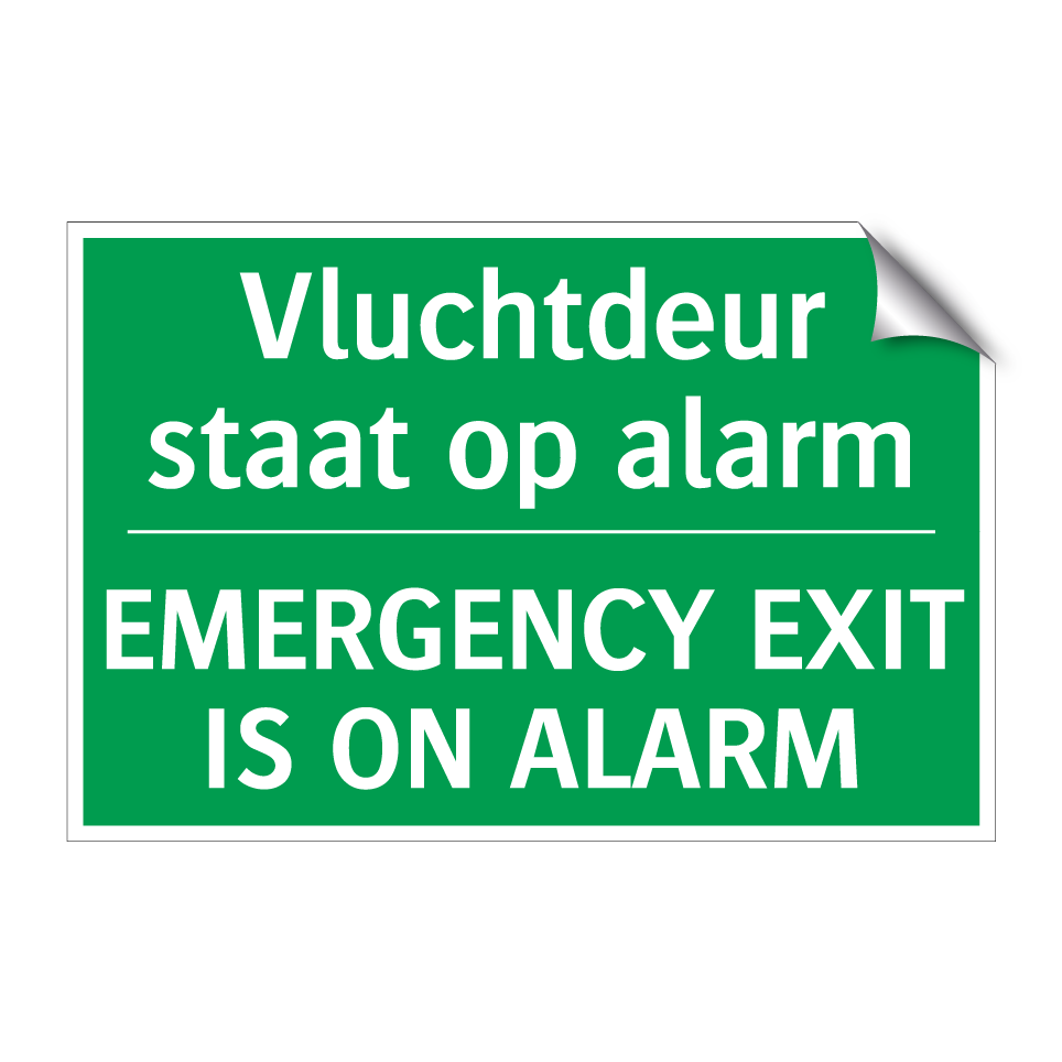 Noodbord met tekst Vluchtdeur staat op alarm / EMERGENCY EXIT IS ON ALARM