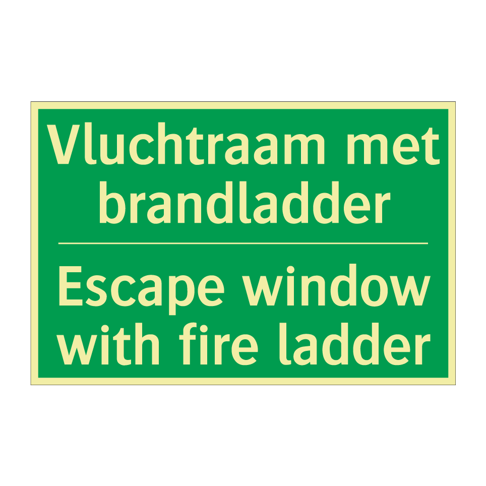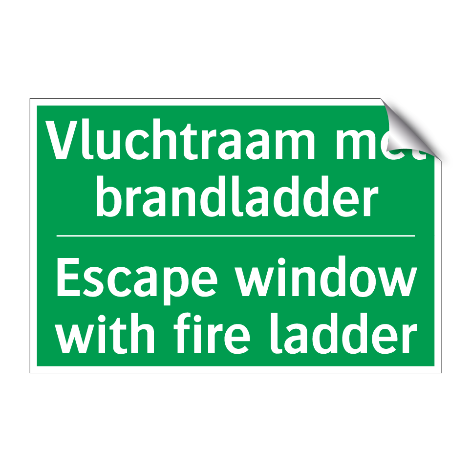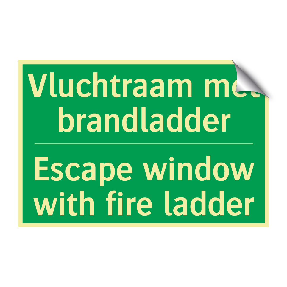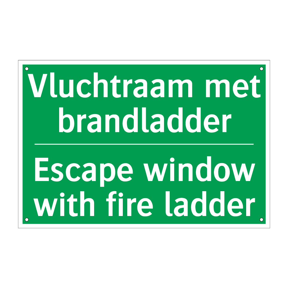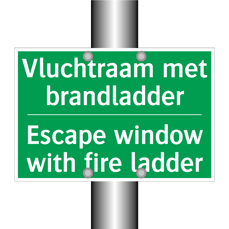 Noodbord met tekst Vluchtraam met brandladder / Escape window with fire ladder