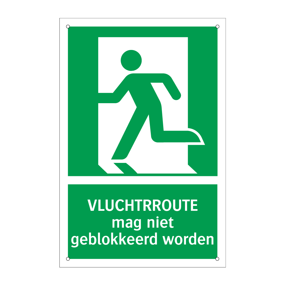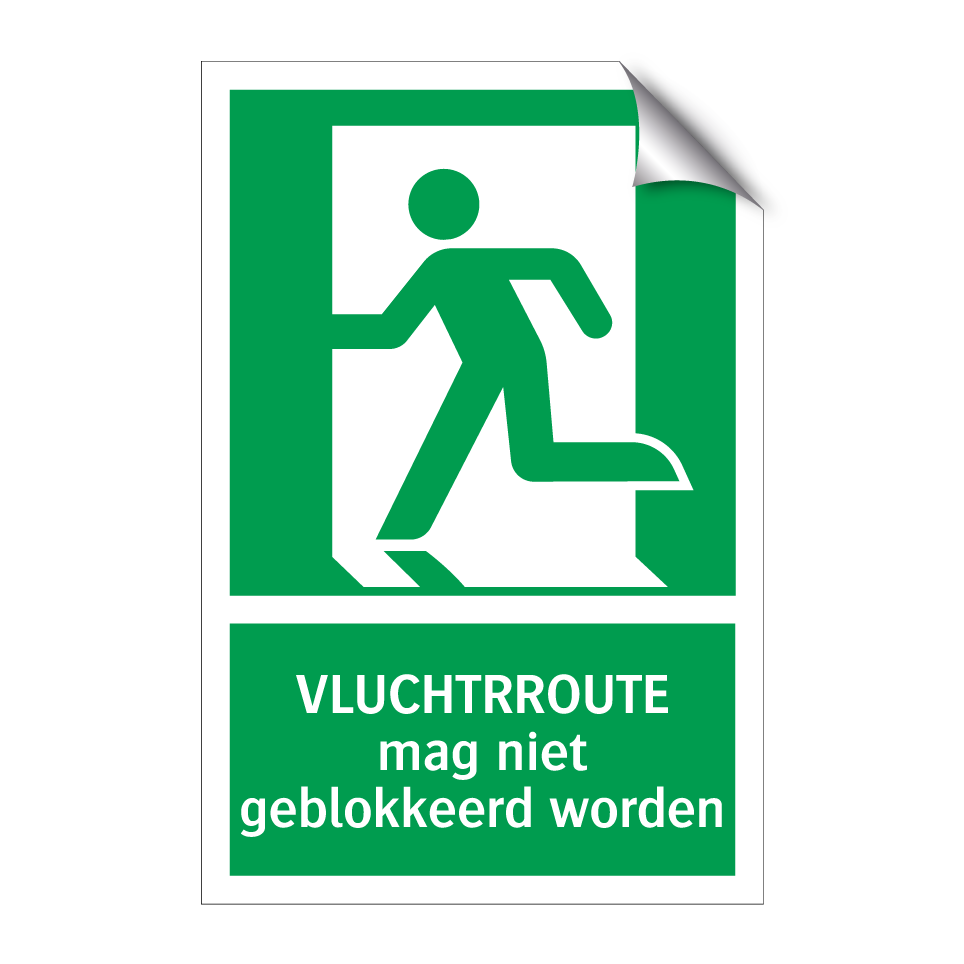 Noodbord met tekst VLUCHTRROUTE mag niet geblokkeerd worden