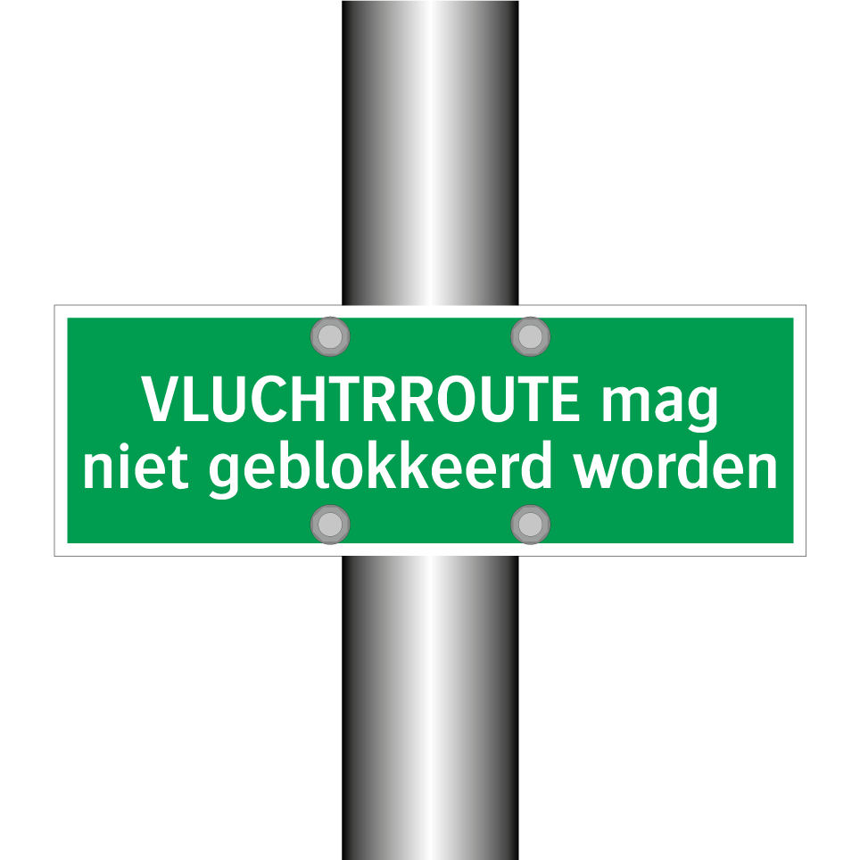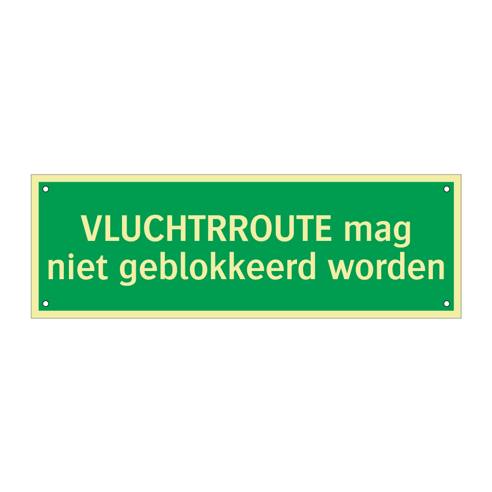 Noodbord met tekst VLUCHTRROUTE mag niet geblokkeerd worden