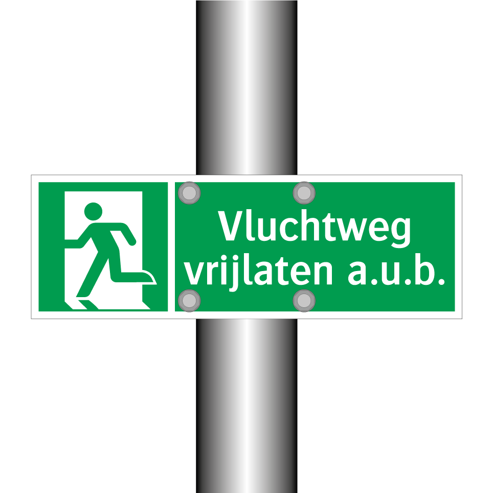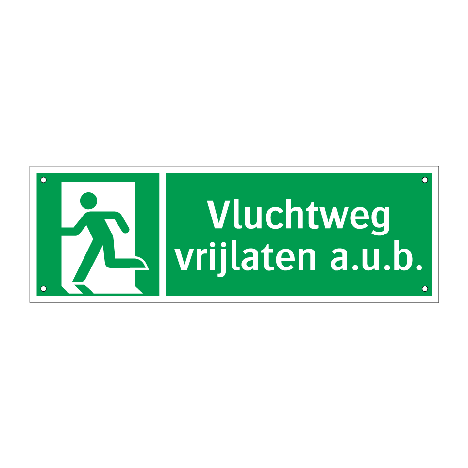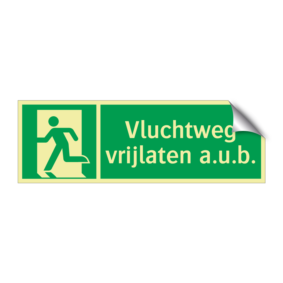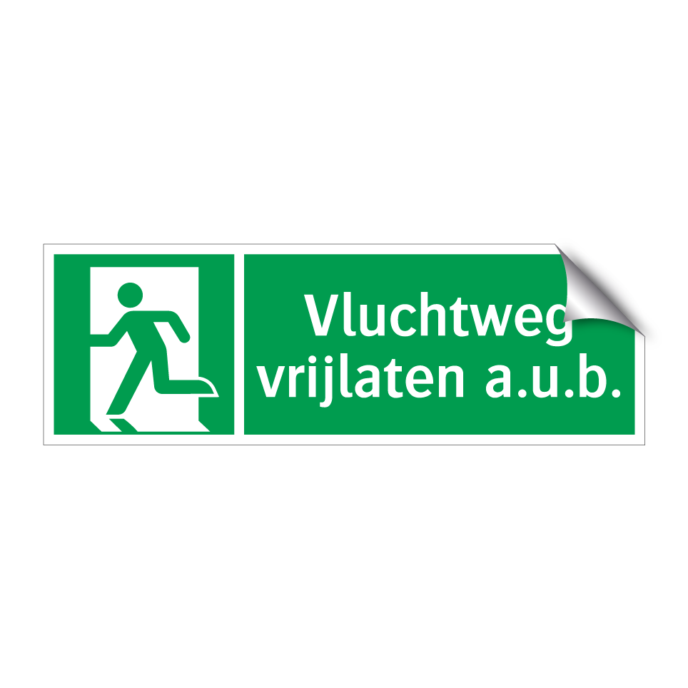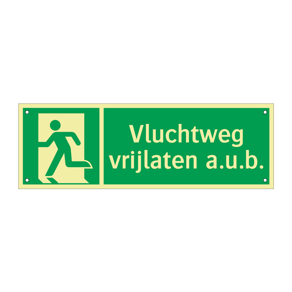 Noodbord met tekst Vluchtweg vrijlaten a.u.b.