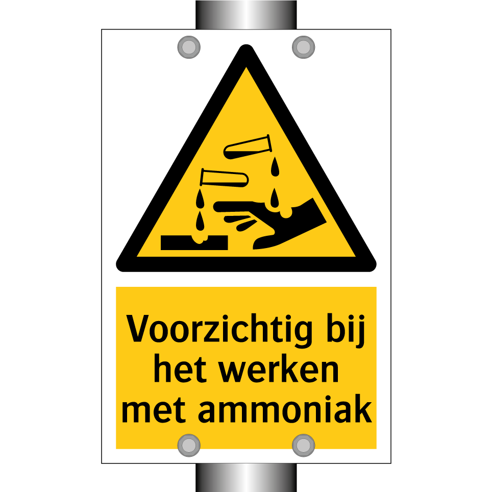 Waarschuwingsbord met de tekst Voorzichtig bij het werken met ammoniak