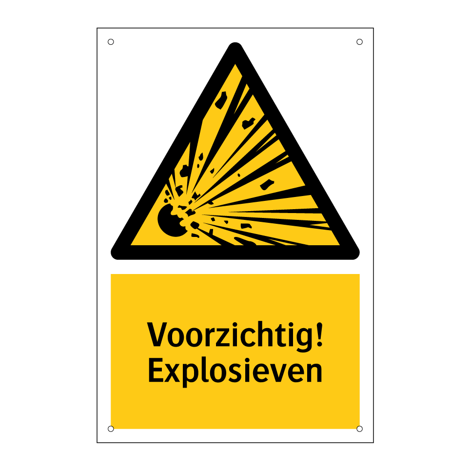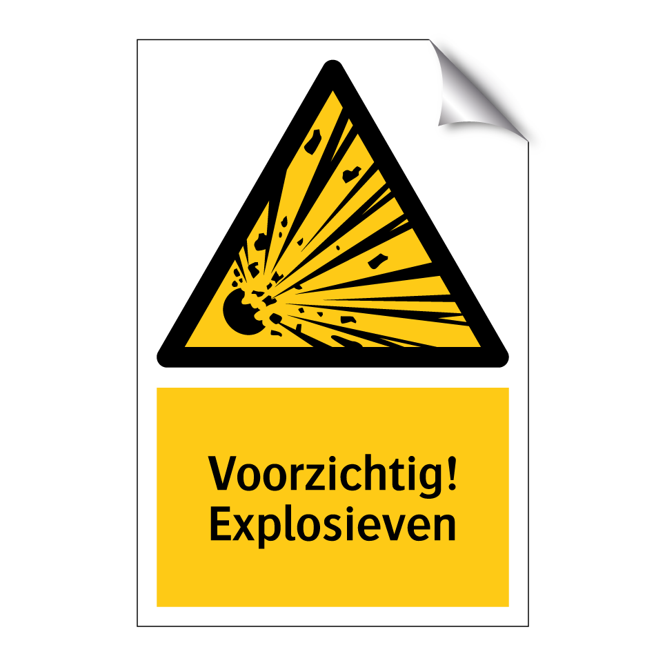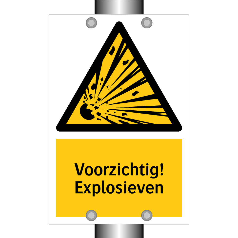Waarschuwingsbord met de tekst Voorzichtig! Explosieven