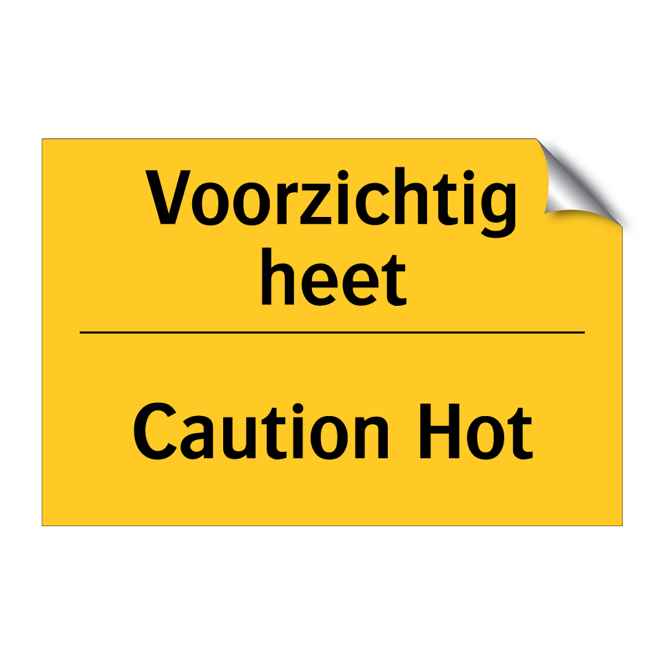 Waarschuwingsbord met de tekst Voorzichtig heet / Caution Hot
