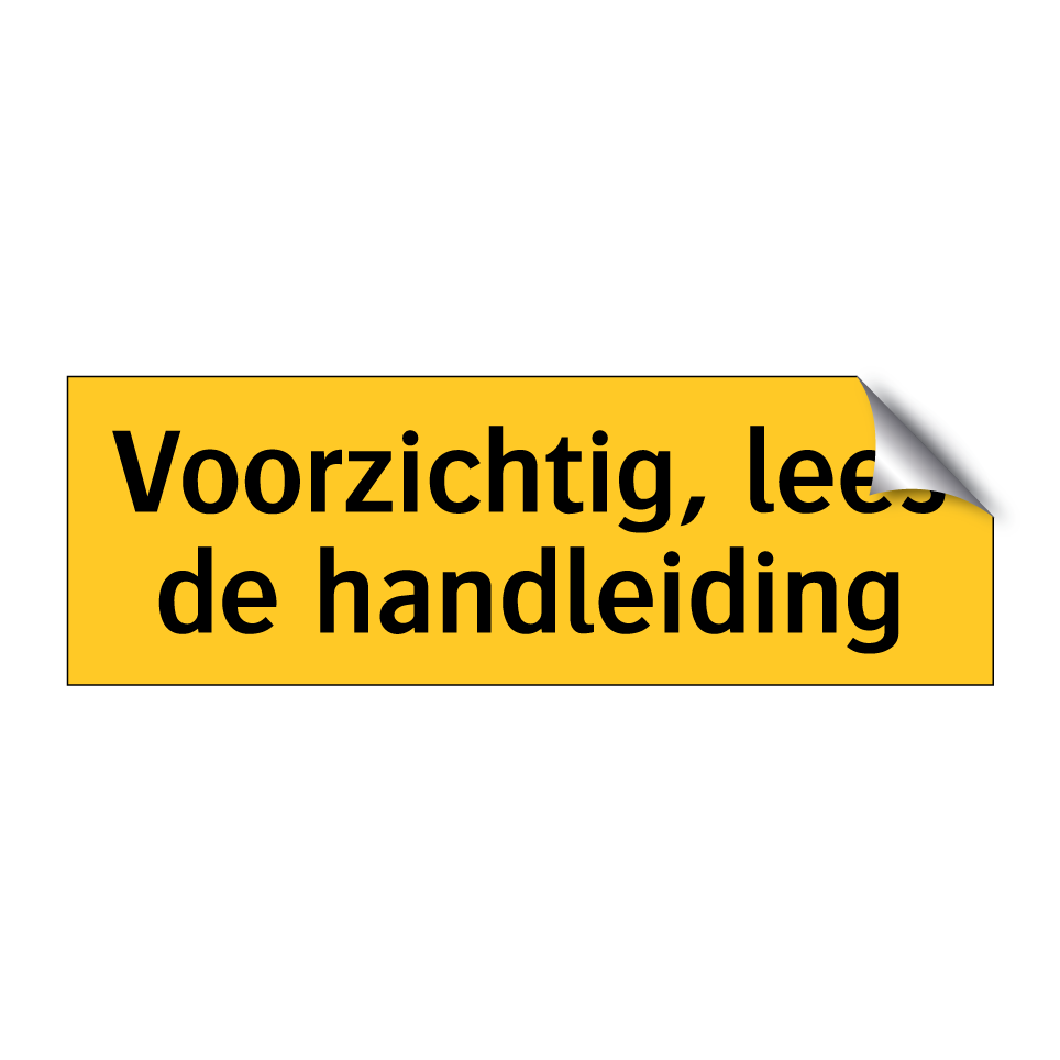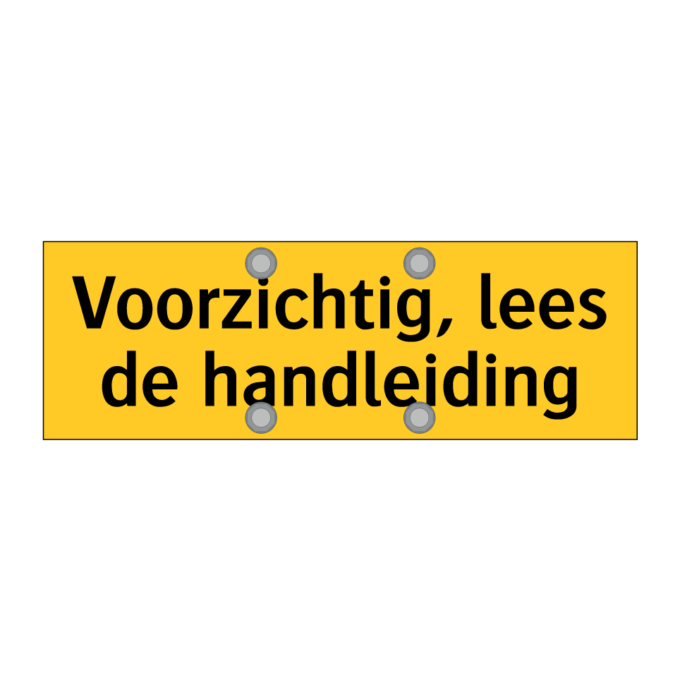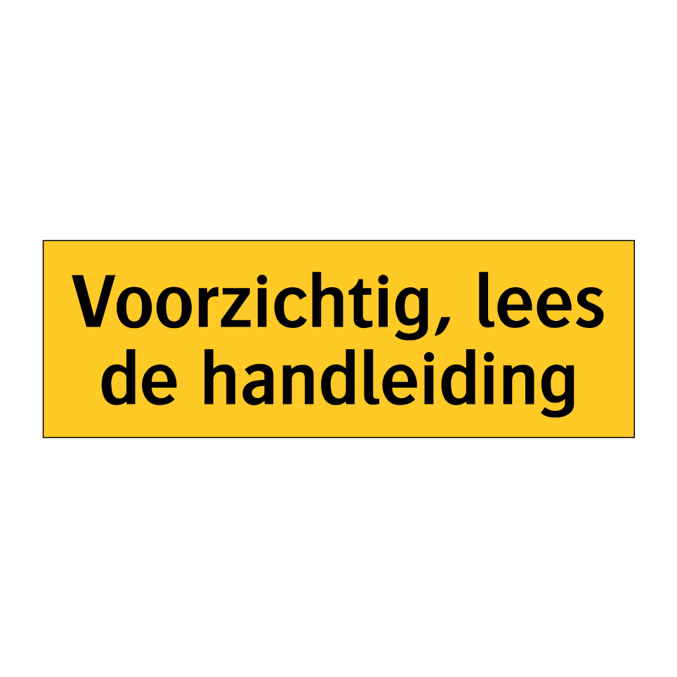 Waarschuwingsbord met de tekst Voorzichtig, lees de handleiding