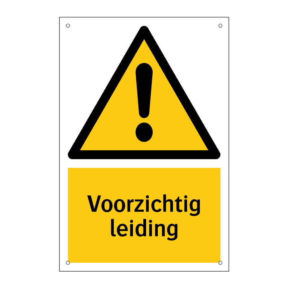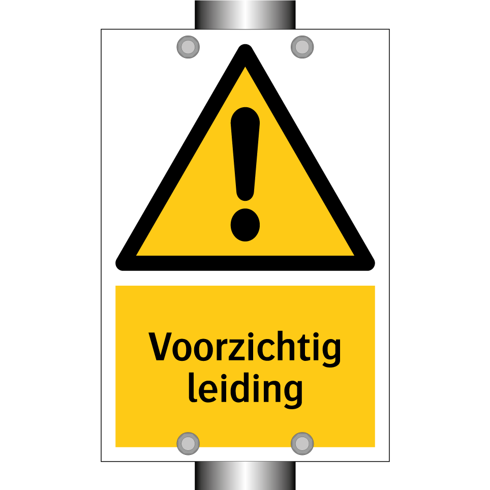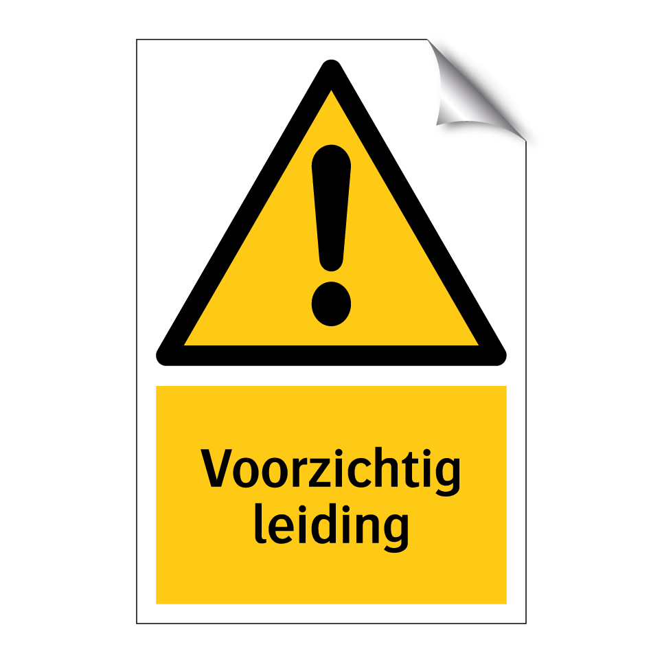Waarschuwingsbord met de tekst Voorzichtig leiding