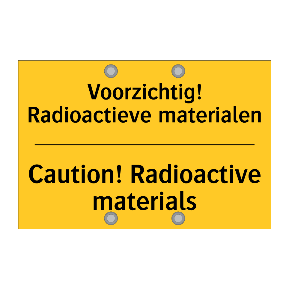 Waarschuwingsbord met de tekst Voorzichtig! Radioactieve materialen / Caution! Radioactive materials