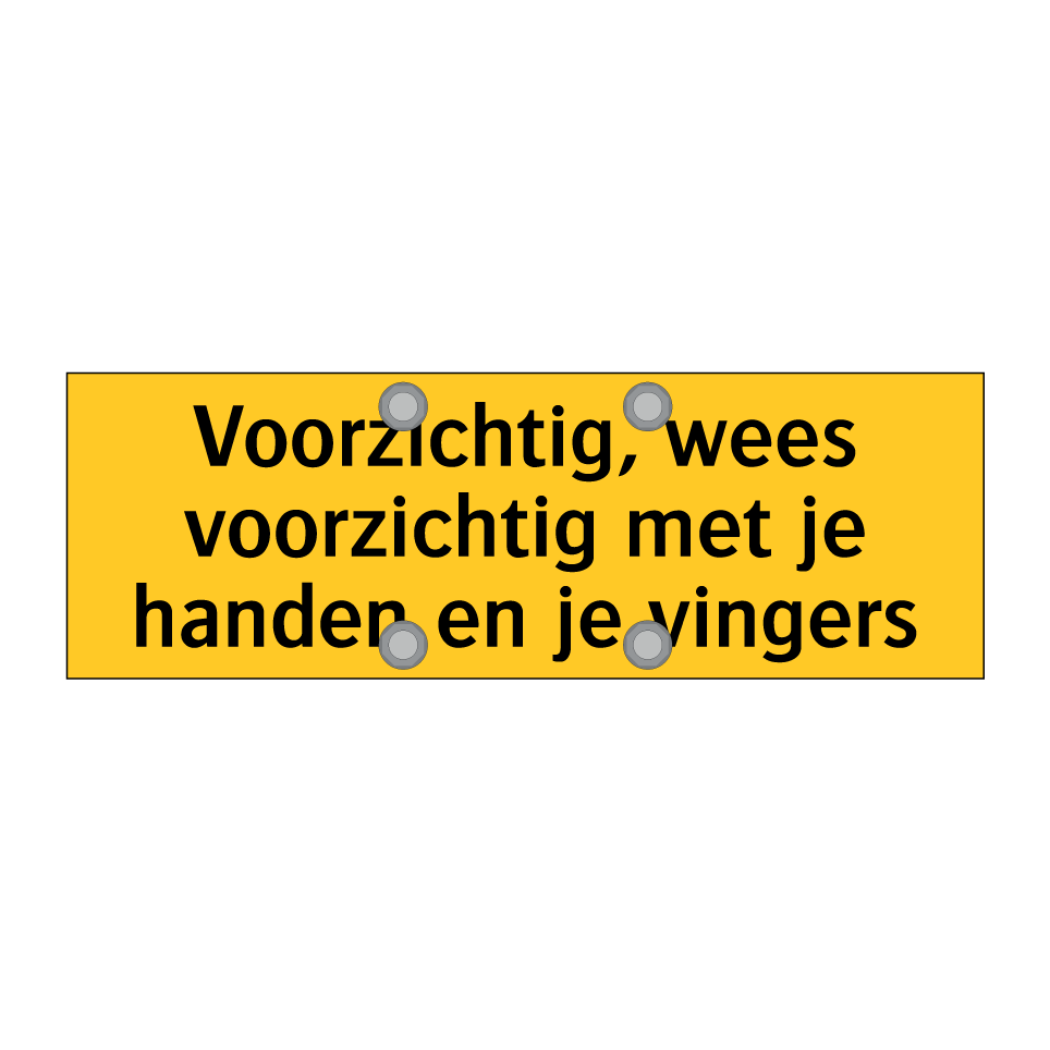 Waarschuwingsbord met de tekst Voorzichtig, wees voorzichtig met je handen en je vingers