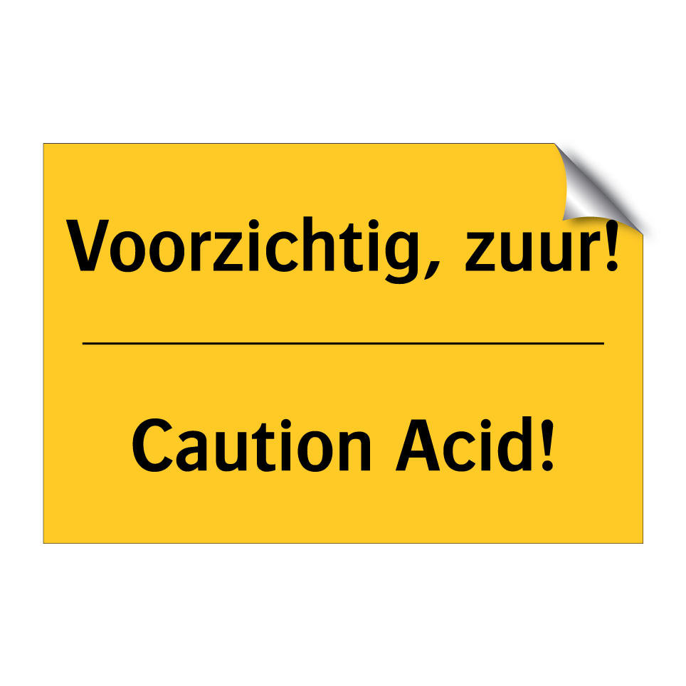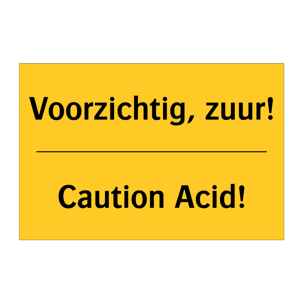 Waarschuwingsbord met de tekst Voorzichtig, zuur! / Caution Acid!